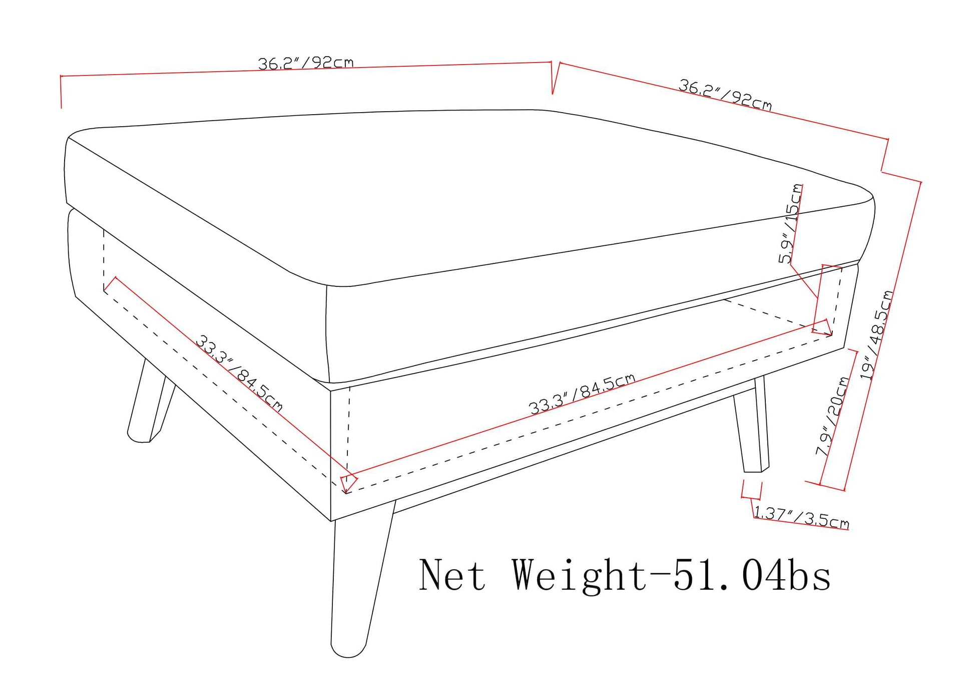 36" D x 36" W x 19.1" H