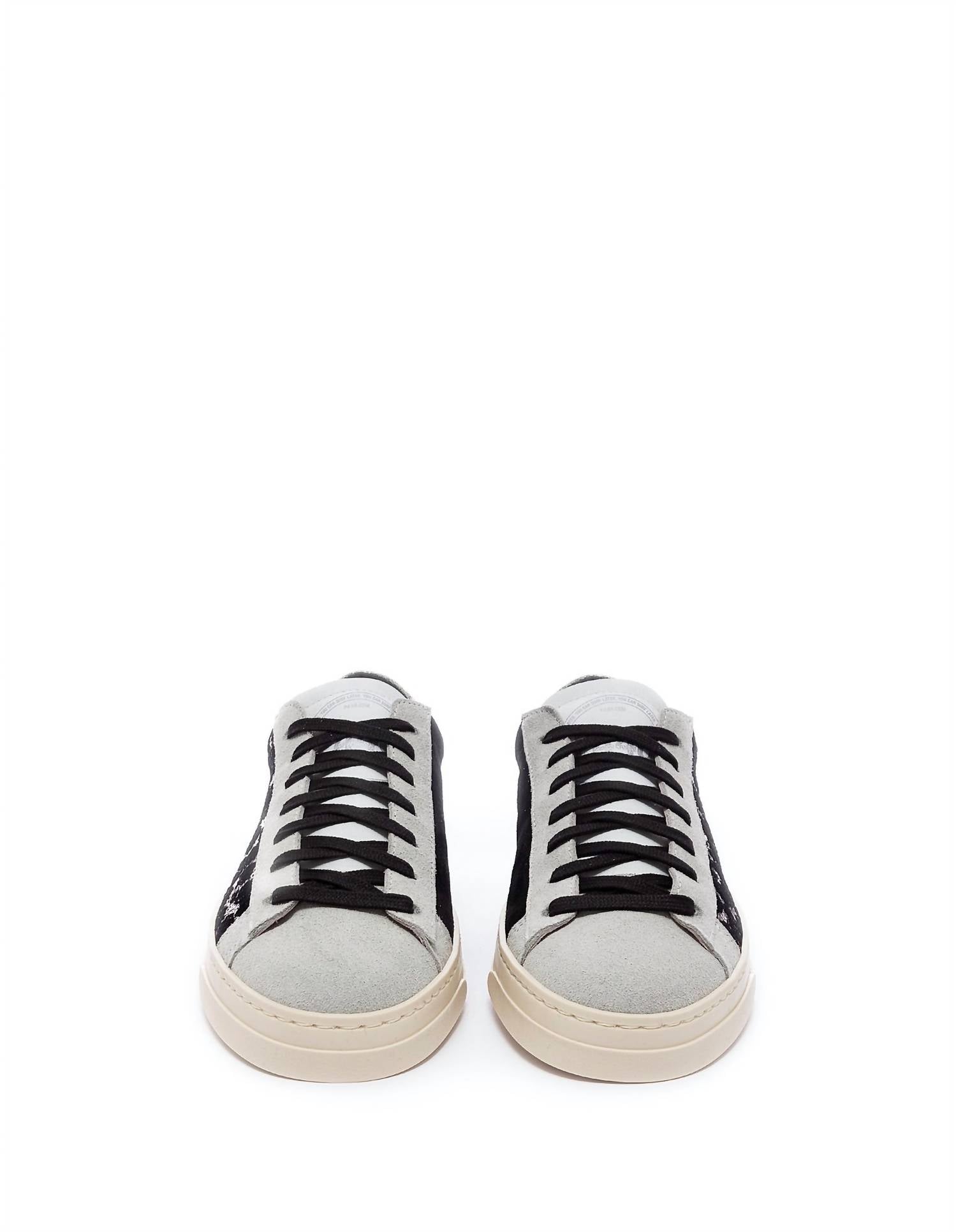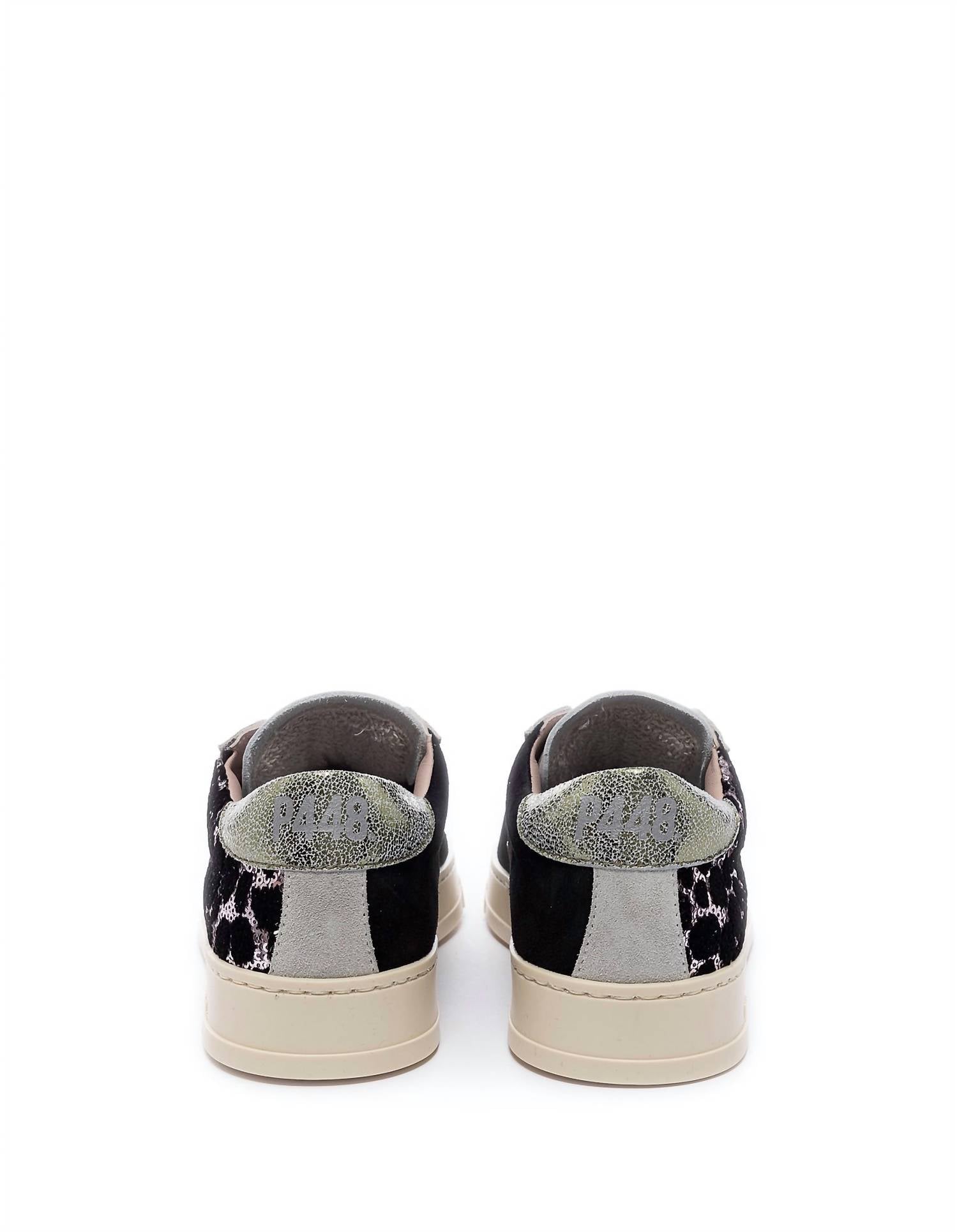 Elevate your sneaker game with the Jack Leather Sneaker by P448, designed in the eye-catching color Petit. These bold sneakers feature sequin details and a comfortable foam-cushioned interior, crafted from premium Italian leather with a signature logo at the heel. Made in Italy, they offer a flat heel and a round toe shape perfect for daily wear. The lace-up style includes a removable insole, with a leather upper, recycled textile, synthetic lining, and a durable rubber sole.