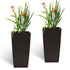 Pack of 2 Brown 22-Inch Faux Rattan Square Planters with Automatic Watering System