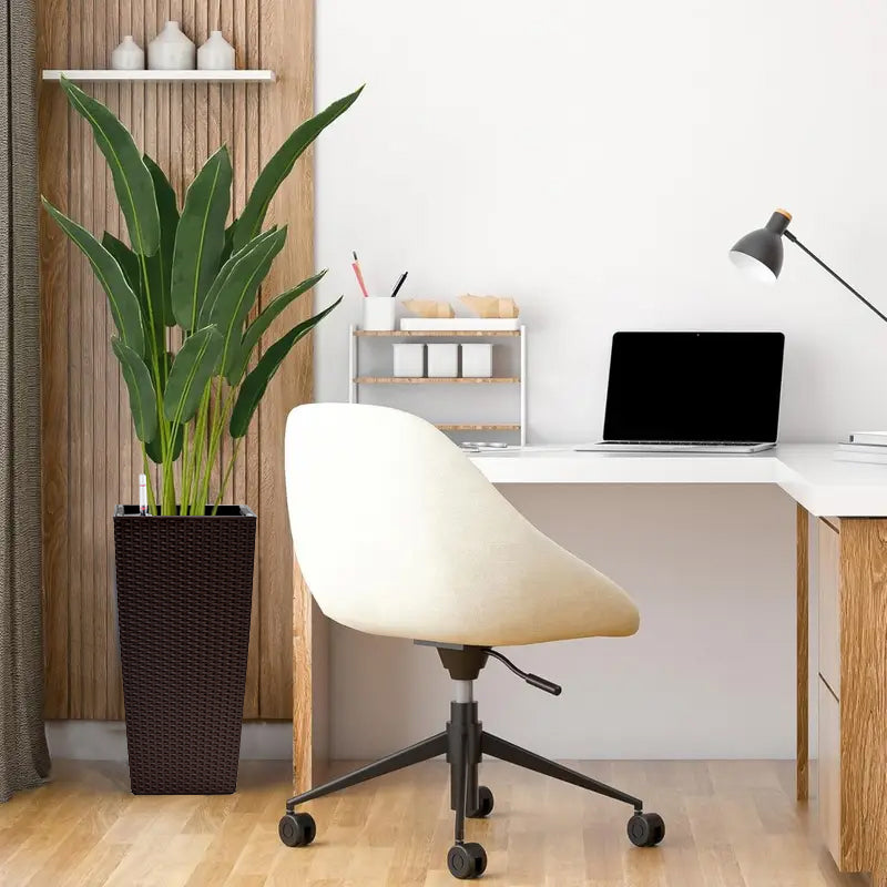 This set of two brown square planters with a faux rattan finish is perfect for enhancing outdoor areas such as patios, porches, or backyards. They combine stylish design with practical features, including an automatic watering system.