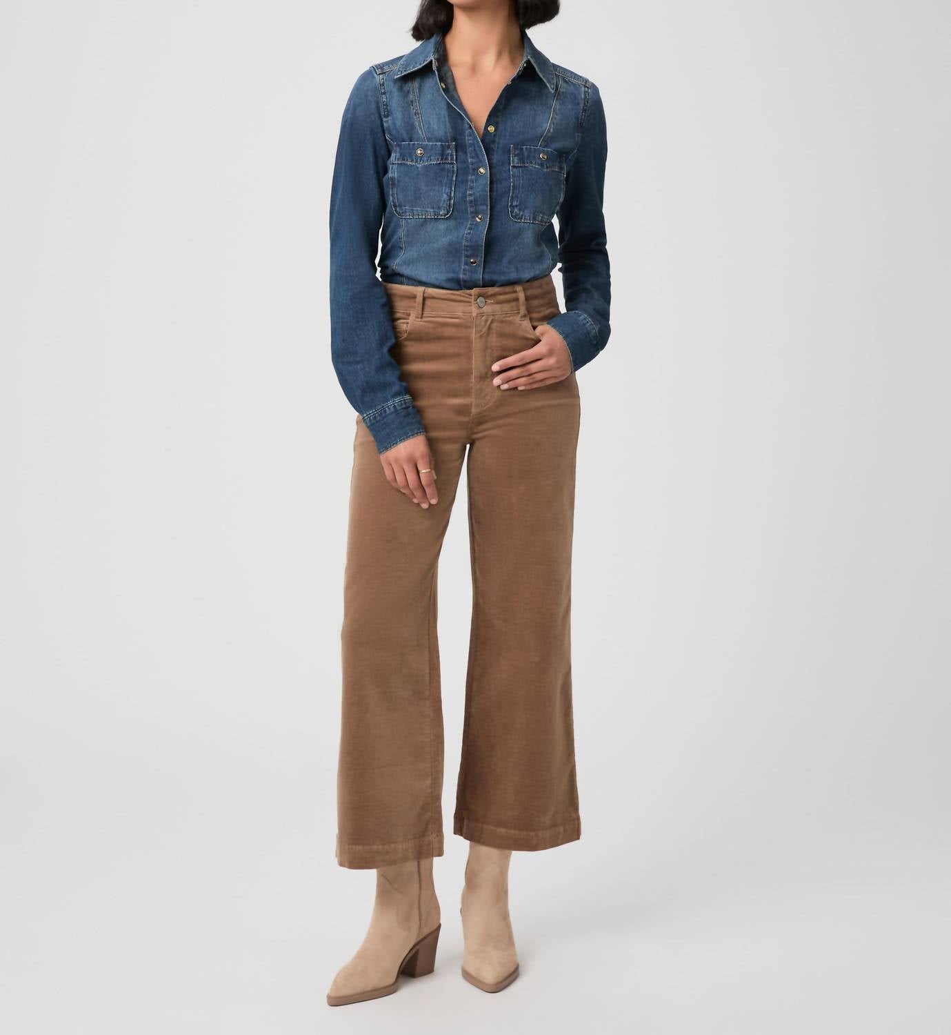 Descubra a Calça Jeans Anessa Ankle da Paige, criada para um estilo descontraído com sua cintura alta e pernas largas. Esta calça jeans vem em um charmoso tom Burnt Sugar, com uma mistura de algodão luxuosamente macia (68% algodão, 30% modal, 2% elastano) com elasticidade confortável. A calça jeans tem um prático fecho de zíper, qualidade importada e uma costura interna de 68 cm, tornando-a uma peça essencial para qualquer ocasião. Os cuidados são simples, com instruções de lavagem e secagem na máquina. A modelo veste tamanho 26 (altura de 1,75 m).