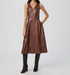 Introducing the Fiorella Dress by Paige, an embodiment of sophistication in French Press brown. This sleeveless midi dress features a flattering V-neckline, a defining belt detail at the waist, and an A-line silhouette with artful seaming. Crafted entirely from polyurethane for a soft stretch faux leather feel, the dress secures with a side zipper for ease of wear. Perfect for versatile styling, the dress adds a touch of elegance to any wardrobe.