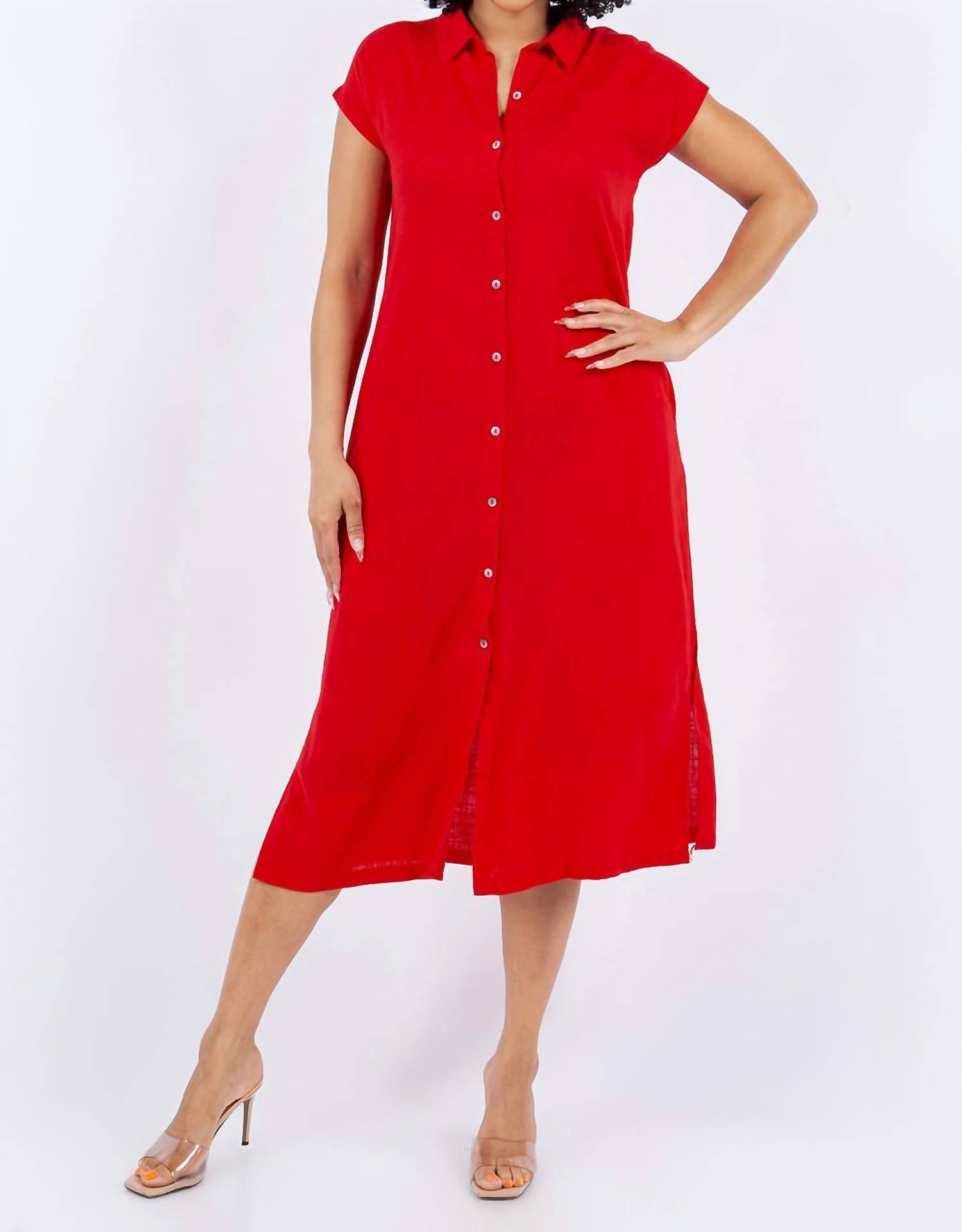 Um vestido midi tão versátil que suas opções de uso são infinitas. O Vestido Camisa Midi Liso em Mistura de Linho da PAPARAZZI é uma adição elegante a qualquer guarda-roupa, confeccionado em um tom vermelho vibrante. Possui mangas curtas, fechamento frontal por botões com gola prática e comprimento midi para um ajuste confortável. Confeccionado em uma mistura de 70% viscose e 30% linho, este vestido possui práticos bolsos laterais internos e um mini bolso no peito. O cuidado é simples: lave à máquina em ciclo delicado e seque em temperatura baixa.