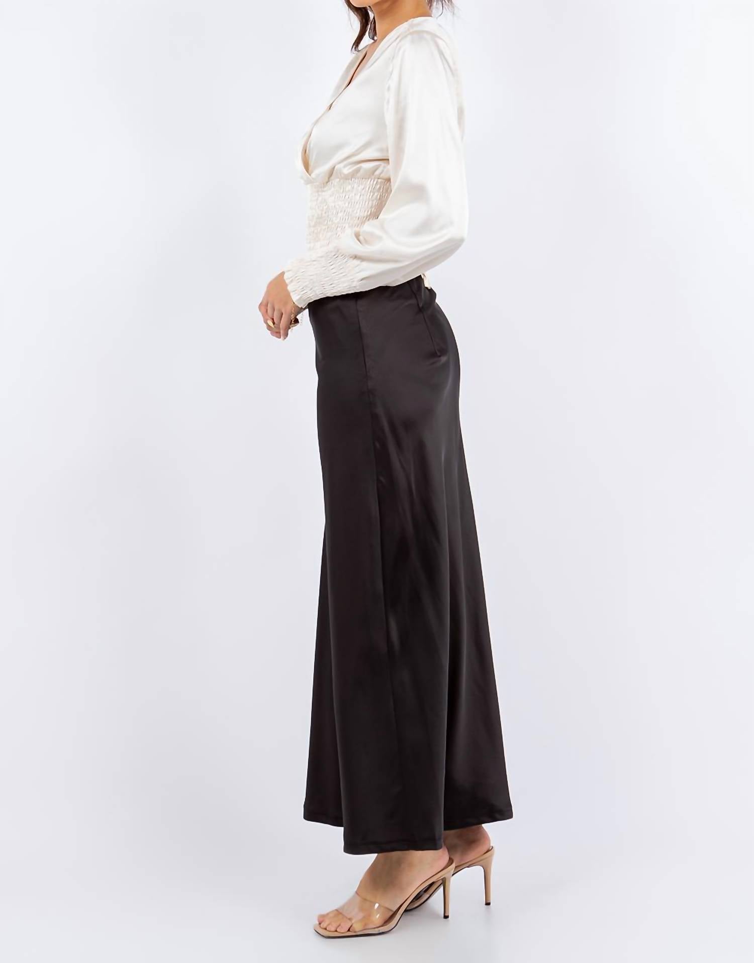 Top curto de cetim charmeuse elástico sólido, decote sobrepeliz com fecho de pressão, ombros franzidos, manga comprida com punho franzido, bainha franzida larga
