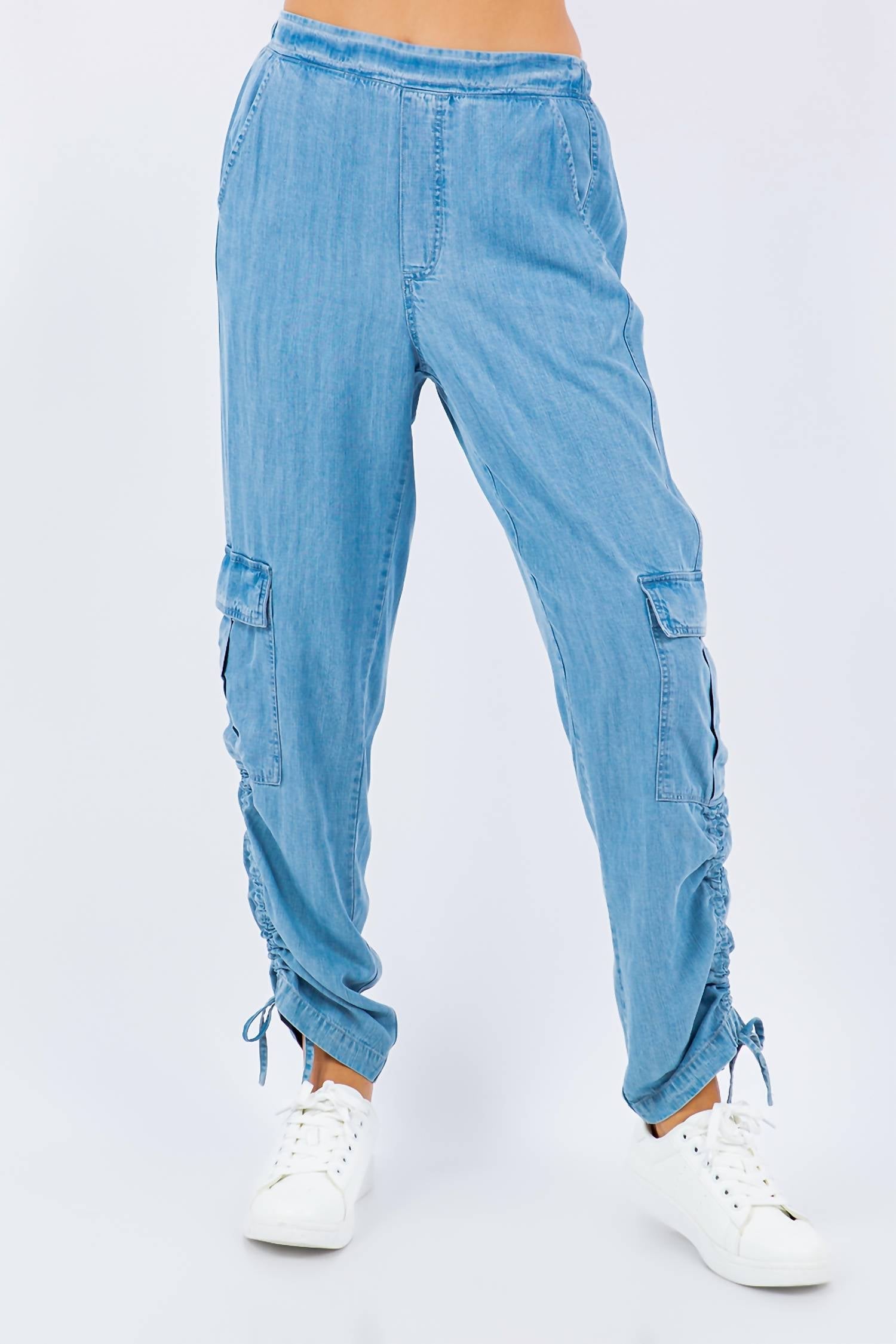 A calça perfeita para correr pela cidade e ficar estilosa enquanto faz isso. Apresentamos a Calça Cargo Cinched Denim Tencel da PAPARAZZI, uma mistura estilosa de utilidade e conforto em uma linda lavagem leve. Esta calça esportiva possui fecho pull-on com parte traseira meio elástica, braguilha falsa na frente e pernas afuniladas e ajustáveis para um ajuste personalizado. Feita 100% Tencel, inclui costura lateral funcional e bolsos grandes com aba nas pernas para armazenamento prático. Fácil de cuidar: basta lavar na máquina com água fria e secar em temperatura baixa.