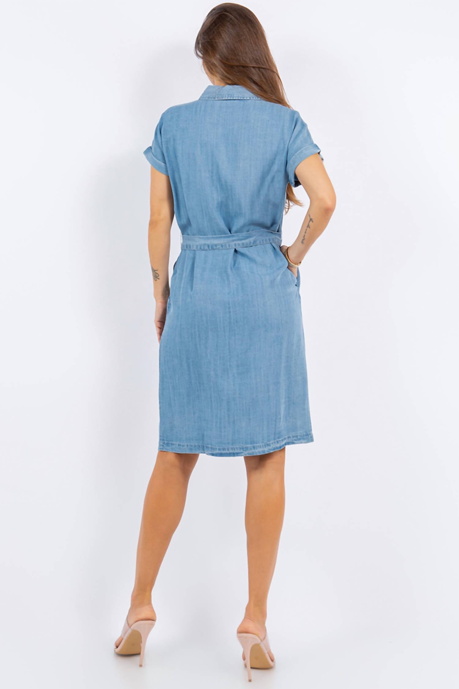 Um vestido curto e arejado para os dias mais quentes. Descubra a elegância sem esforço com o Vestido-Camisa Jeans Tencel de Manga Curta da PAPARAZZI em uma lavagem leve e contemporânea. Este minivestido possui mangas curtas com punhos e um fecho frontal com botões de pressão e gola, complementado por um cinto autoamarrável para uma silhueta elegante. Confeccionado em 100% Tencel, oferece bainha reta e bolsos práticos para maior praticidade. Fechamento: Botão. Cuidados: Lavar à máquina com água fria, não usar alvejante, secar em temperatura baixa.