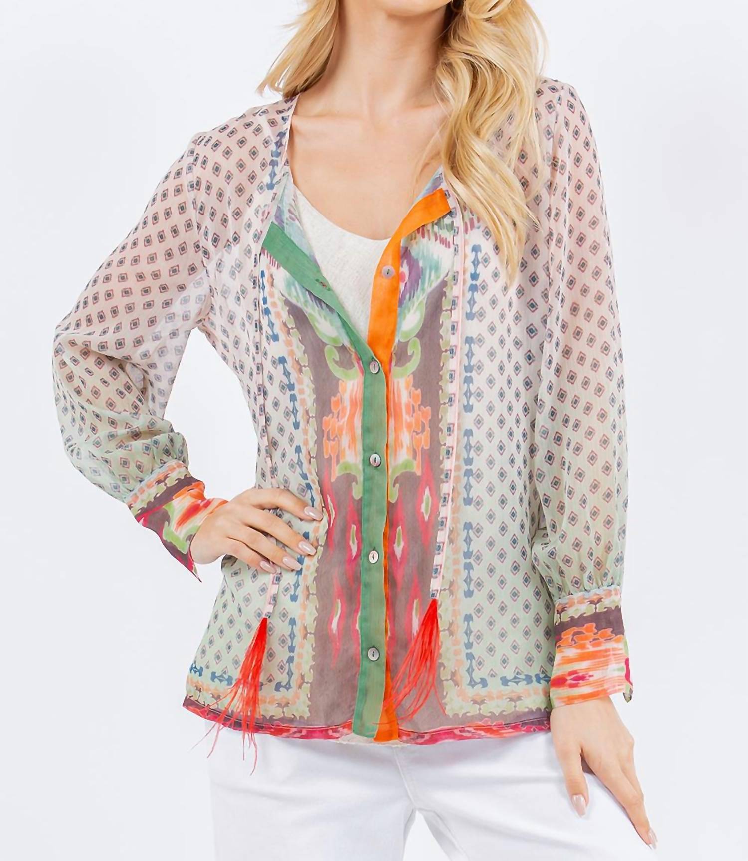 Paparazzi - Blusa transparente com botões frontais em ikat - Sem forro