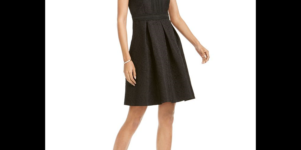 Vista-se com elegância, elegância e beleza com este vestido bordado em corte A da Pappagallo. | Comprimento aproximado de 38, do centro do pescoço até a bainha. O comprimento é baseado no tamanho 4 e varia 1/4 entre os tamanhos. | Decote em V com entalhe; corte em corte A. | Fechamento com zíper nas costas. | Enfeites na frente e na cintura.
