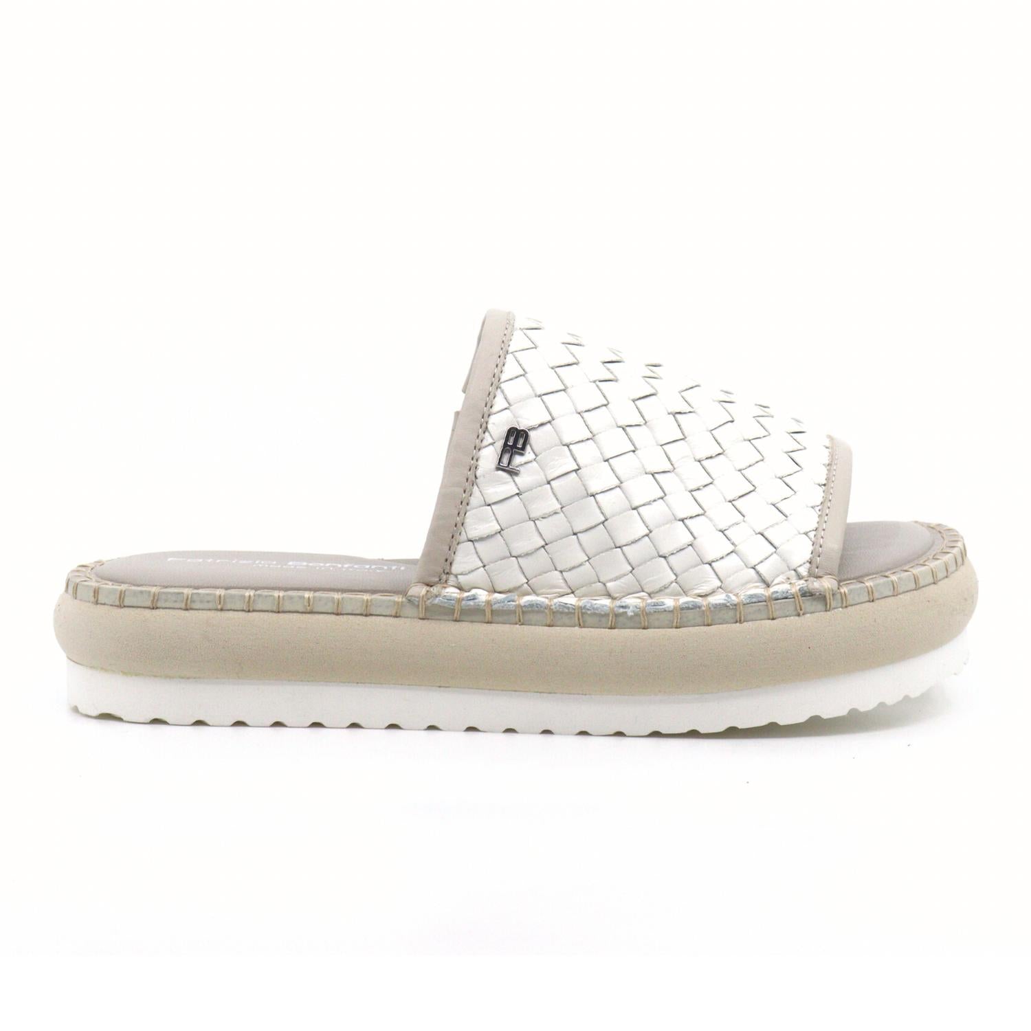Couro trançado. Acabamento em couro bege. Solado bicolor. Costura artesanal. Elástico interno. Solado reforçado. Fabricado na Itália.