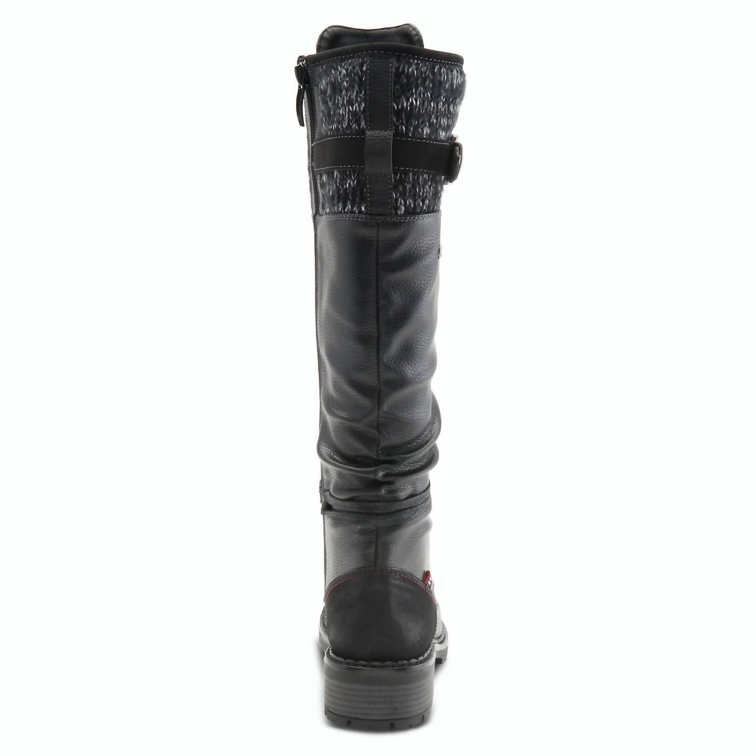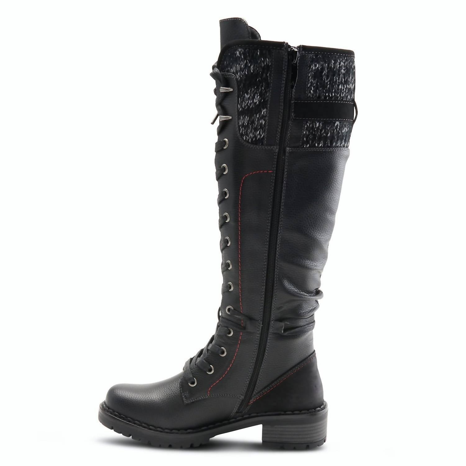 Introducing the Women Chilly Knit Cuff Mixed Media Tall Vegan Boot by Patrizia, a stylish choice for fall streetwear enthusiasts. This lace-up boot combines a cozy knit cuff and buckle strap detail for a mixed-media appeal with a slight slouch. Crafted from textile and vegan leather, it features a warm faux fur lining and insole, making it ideal for cooler temperatures. The design includes a comfortable faux stacked heel of 1 5/8 inches and a flexible lug sole, ensuring both fashion and function. Embrace the season with this versatile piece, perfect for concert outings. Closure: Zipper.