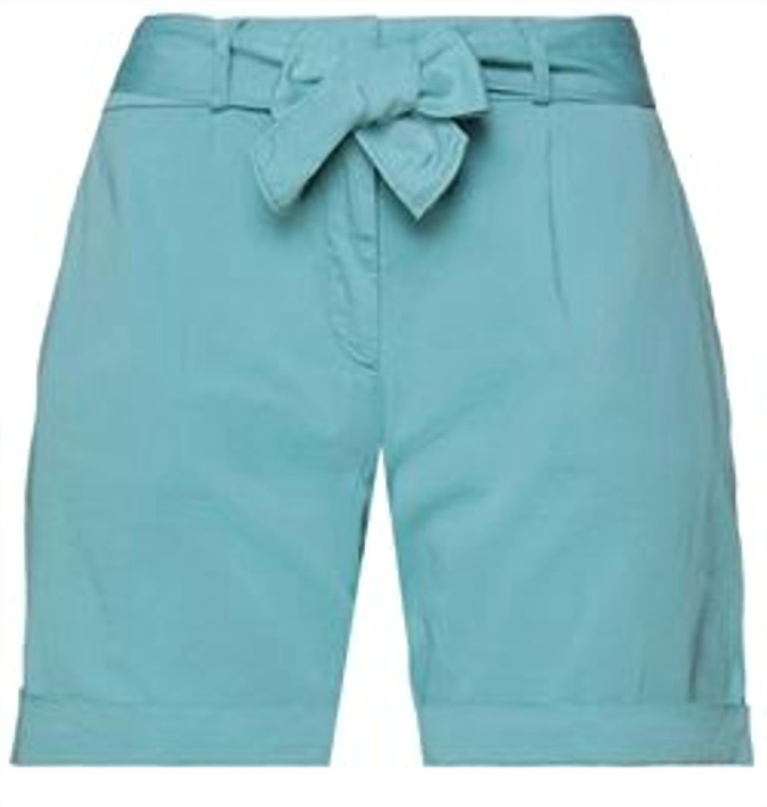 Mid-rise woven shorts with a belted waistline and folded hem. Designed with multiple pockets, hook-and-zipper fastening, and added stretch for comfort. Composition: 96% Cotton, 4% Elastane.