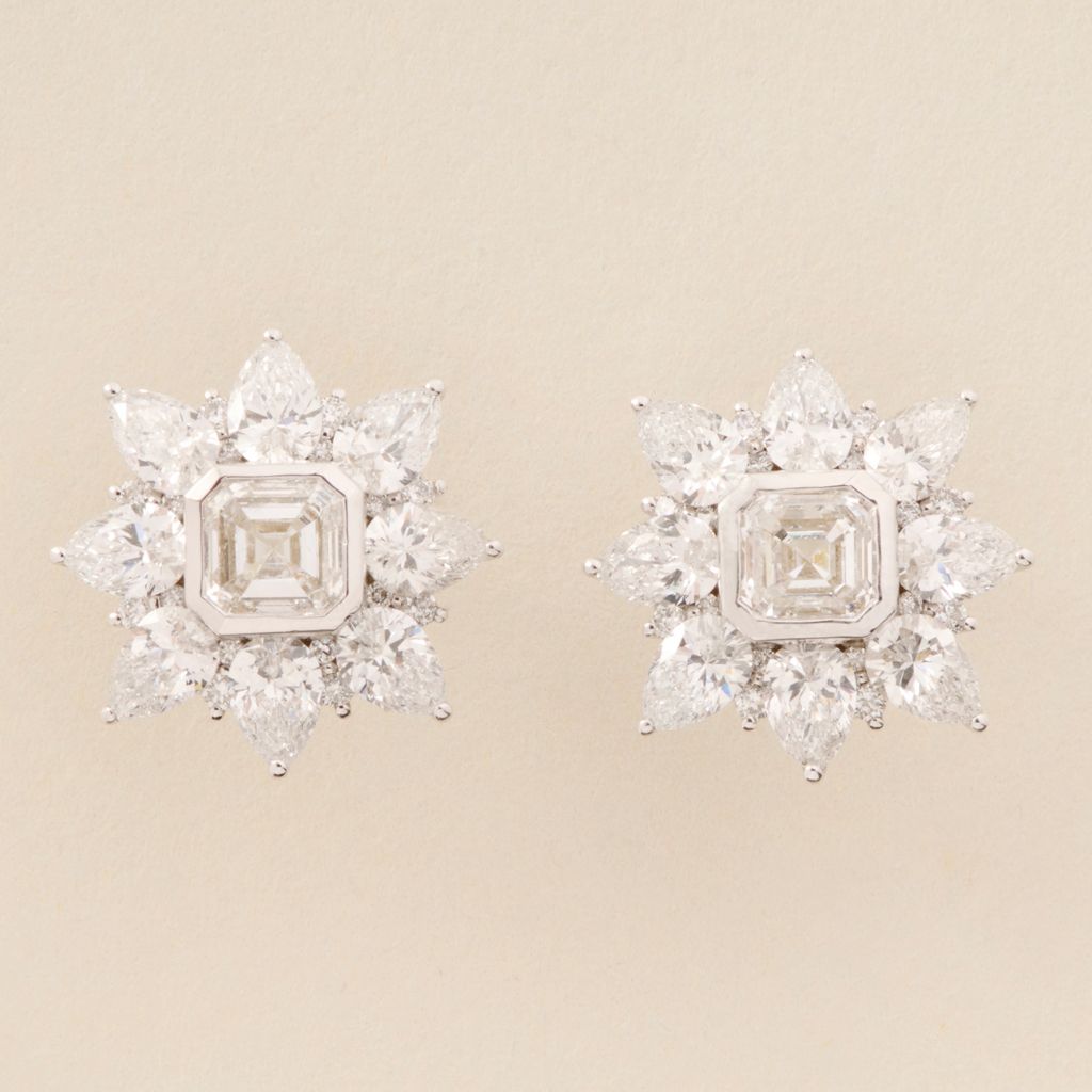Brincos de diamantes cultivados em laboratório, Asscher, pera e redondos, ouro 14K, 4,00ctw, Peace Jewelers
