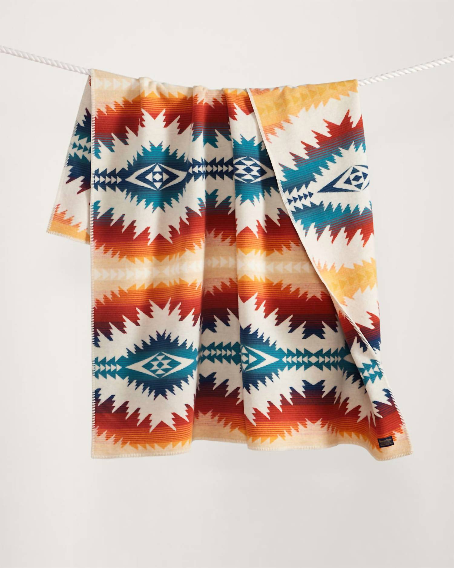 Wrap yourself in the luxurious warmth of the Pendleton Jacquard Napped Blanket Robe, crafted with meticulous care in the USA. This exquisite piece, available in a stunning Sunset Pass pattern, measures an ample 64" x 80" and is composed of 82% pure virgin wool and 18% cotton. With fabric woven in American mills, it feels soft and thick, enhanced by a napped finish and whipstitch binding. Care: Dry clean only.