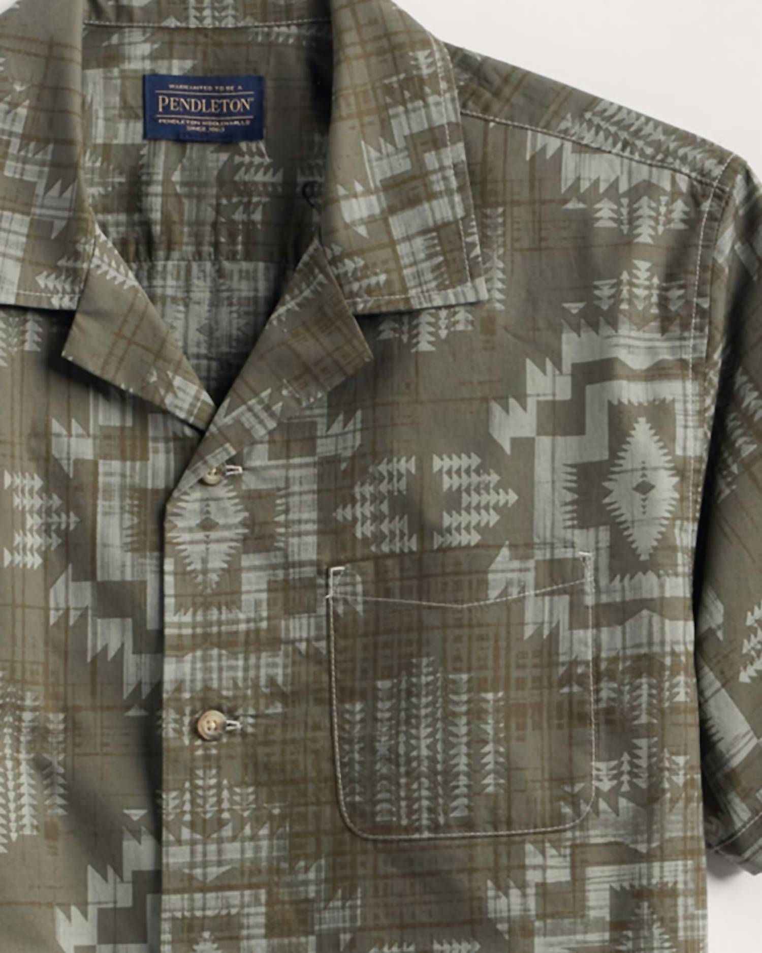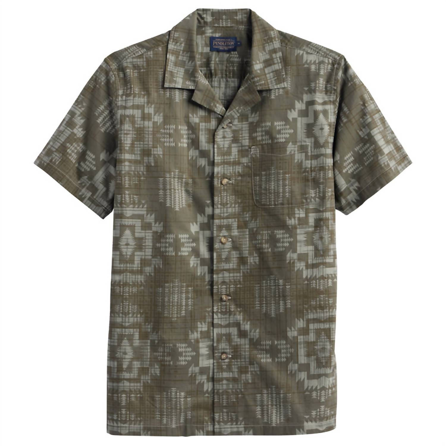 Elevate your casual wardrobe with the Men's Aloha Shirt by Pendleton, a tribute to relaxed style with a vibrant allover print in Olive Harding. This cotton shirt boasts short sleeves, a camp collar, and a convenient patch pocket on the chest, all finished with a straightforward button-front closure and a straight hem. Care is effortless with machine wash and tumble drying options, ensuring this shirt is as practical as it is stylish. Perfect for summer gatherings and laid-back days, this patterned shirt is a must-have for adding flair to your everyday look.