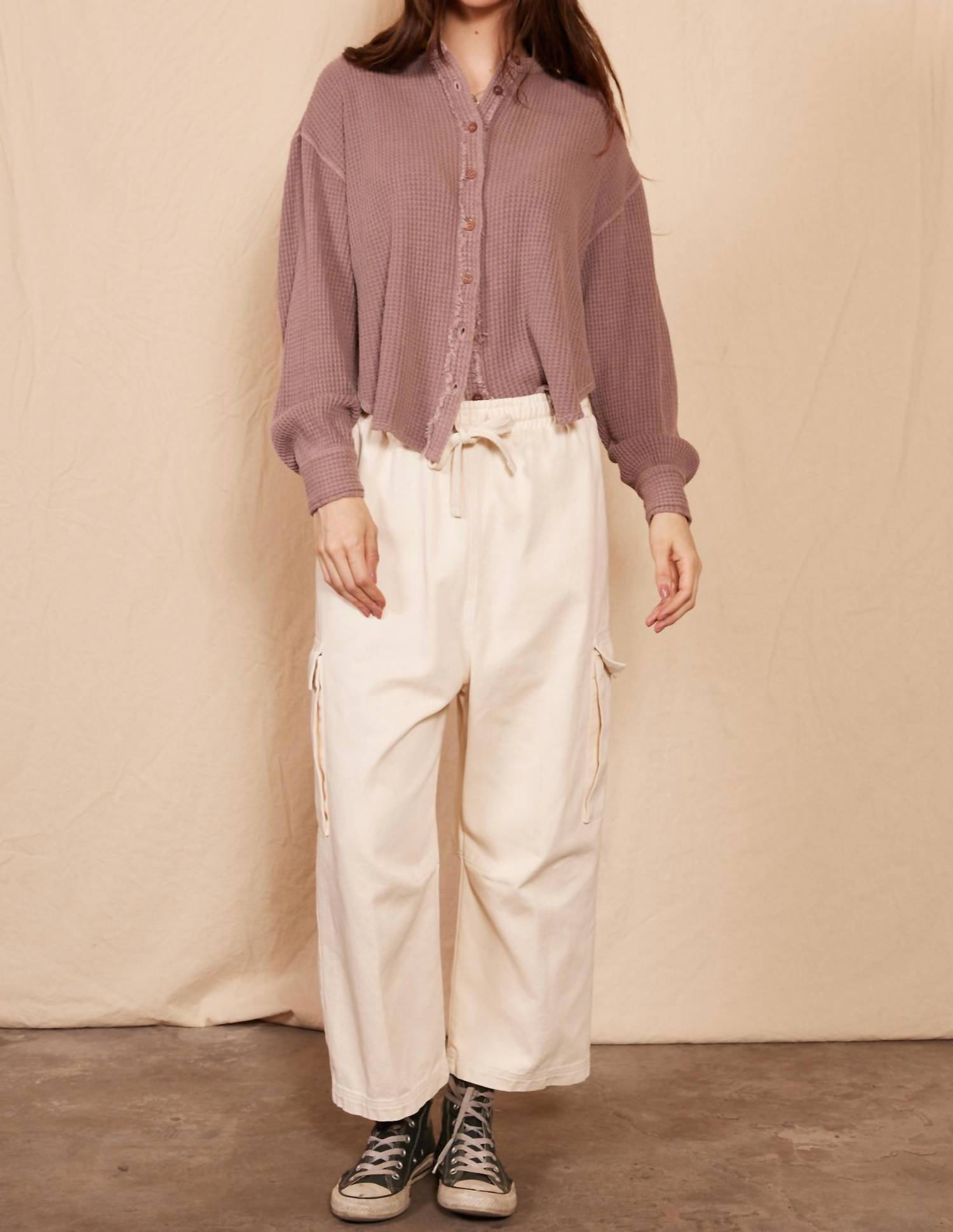 Uma camisa clássica de botões que nunca sai de moda. Descubra a Quinn Waffle Top da People of Leisure, uma escolha sustentável para o viajante ecoconsciente. Esta camisa de manga comprida é feita com 98% de cânhamo e 2% de elastano para um toque confortável e texturizado. O fecho é um clássico estilo abotoado, com uma gola redonda chique e um toque minimalista em cru. Cuide desta peça única lavando-a na máquina e secando em temperatura baixa para manter seu charme.