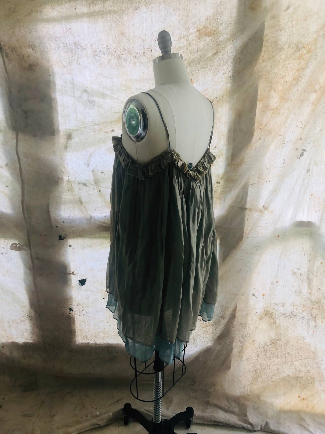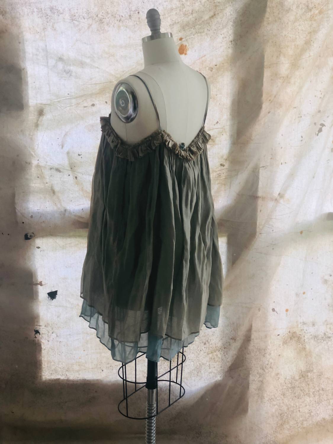The perfect tank top for those warmer weather seasons. Introducing the Women's Double Top by PÉRO, a chic and unique piece handcrafted in the vibrant hues of blue and teal. This elegant tank top features delicate spaghetti straps and a flattering scoop neckline, blending 50% cotton and 50% silk for a luxurious feel. Designed and handwoven in India, it exemplifies the fusion of international aesthetic with traditional Indian craftsmanship. Closure is effortless with a pull-on style, and care is simple with hand wash instructions.