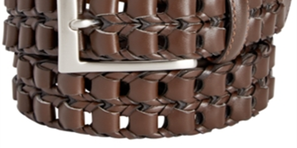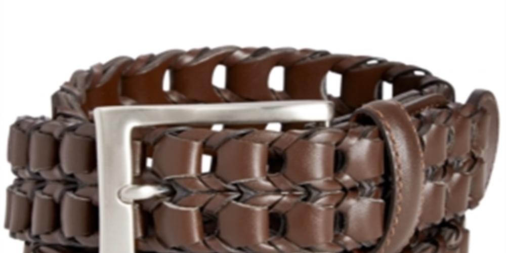 Cinto masculino Perry Ellis de couro trançado com fivela marrom tamanho grande