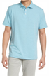 Camisa polo masculina Peter Millar Crest Isle Stripe de manga curta em azul-ilha, tamanho pequeno