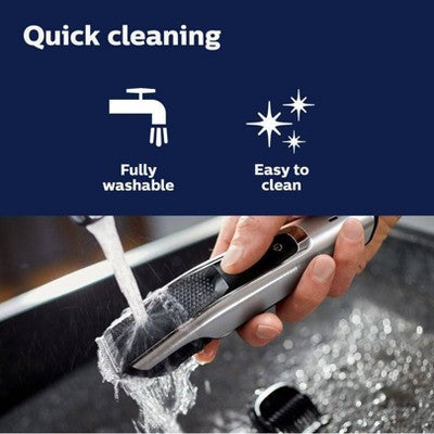 Looking for the perfect gift? The Philips Norelco Beard Trimmer 5500 is a premium beard and stubble trimmer which also cuts hair. Designed for an one pass even trim from any angle and features 40 adjustable lengths with 3 additional attachment guards, Our unique DualCut steel blades provide a fast and even trimm, and 90 minutes of Litihium Ion run time. Gives you an effortless even trim to achieve a the 3-day stubble, short beard, long beard or even touch up your hair style. Get the look you want with 40 adjustable length settings from 0.4mm (1/64") to 20mm (25/32") and additional 3 guard attachments. Our innovative Lift & Trim PRO system lifts low-lying hairs and guides them towards the sharp metal blades for a precise cut. Philips Norelco products have adaptors with automatic voltage selection with 100 to 240 volts printed on the adaptor to select. For international travel, you may need to use another adaptor or plug, depending on the countries power system and outlets. Advanced lithium-ion battery delivers up to 90 minutes of cordless use with 1 hour charge. Trimmer can be used while charging. Easy to use and clean with fully washable feature. Packaging uses plastic alternative such as FSC-certified paper, aluminum, steel, or glass with great potential to be widely circular for majority of product packaging. This item's packaging is made with up to 99% plastic alternative materials. 5 Year Warranty.