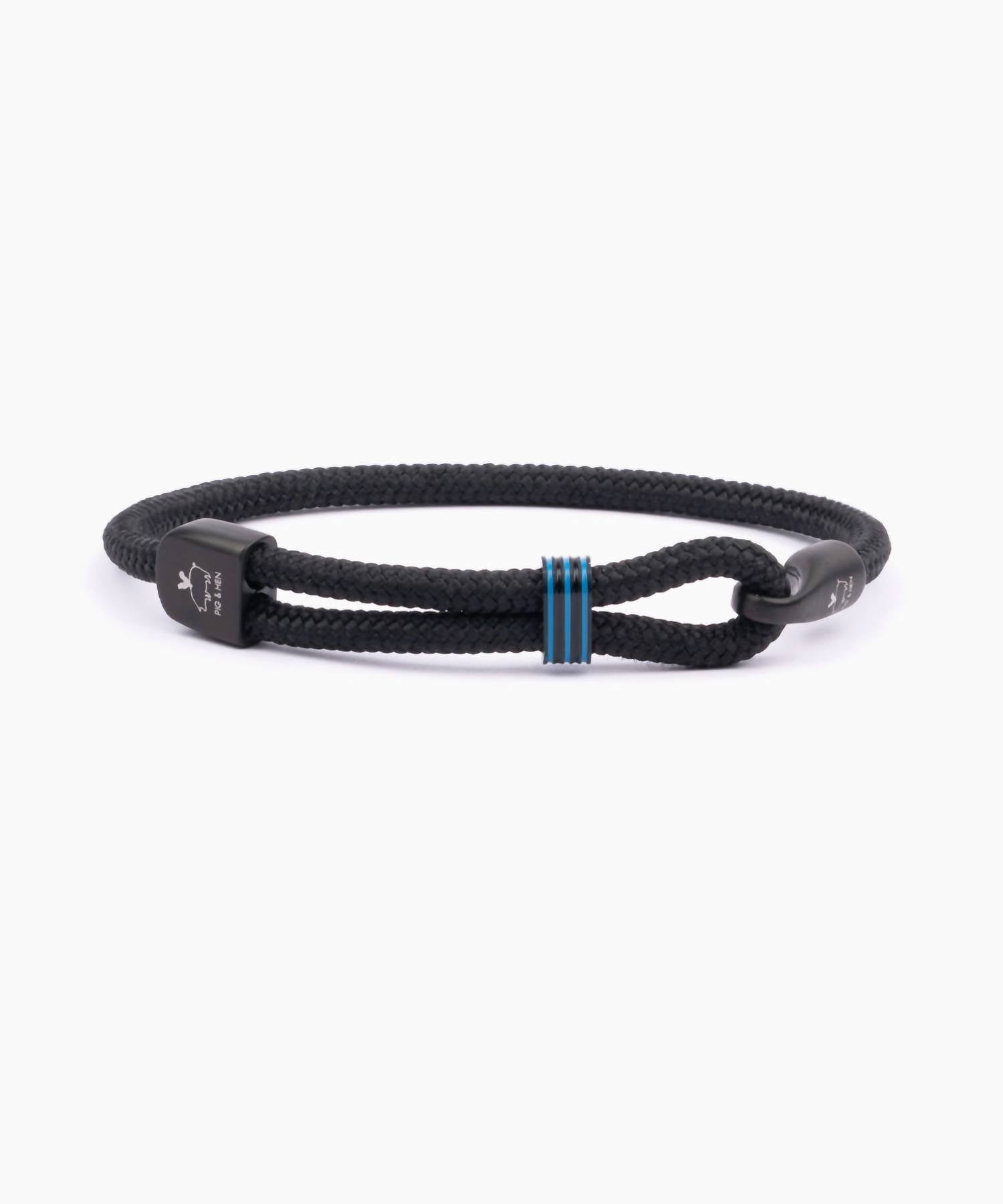 The Men's Captain Carl Bracelet by Pig & Hen is a sophisticated piece crafted from marine-grade 316L Stainless Steel with a sleek black PVD finish. This fashionable jewelry item features an ornate 6mm stainless steel hook clasp that securely fastens the adjustable nautical rope bracelet, which you can easily size by altering the black round rope's loop. With a 4mm rope width, the bracelet promises durability, being wear-resistant and non-tarnishing. Perfect for adding a touch of nautical elegance to any outfit.
