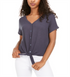 A textura térmica ganha um novo formato no top macio da Pink Rose com mangas curtas estilo dolman e um descontraído laço frontal. | Caimento relaxado | Decote em V; fecho frontal por botões | Amarração com nó na cintura frontal | Mangas curtas estilo dolman | Modelagem pequena