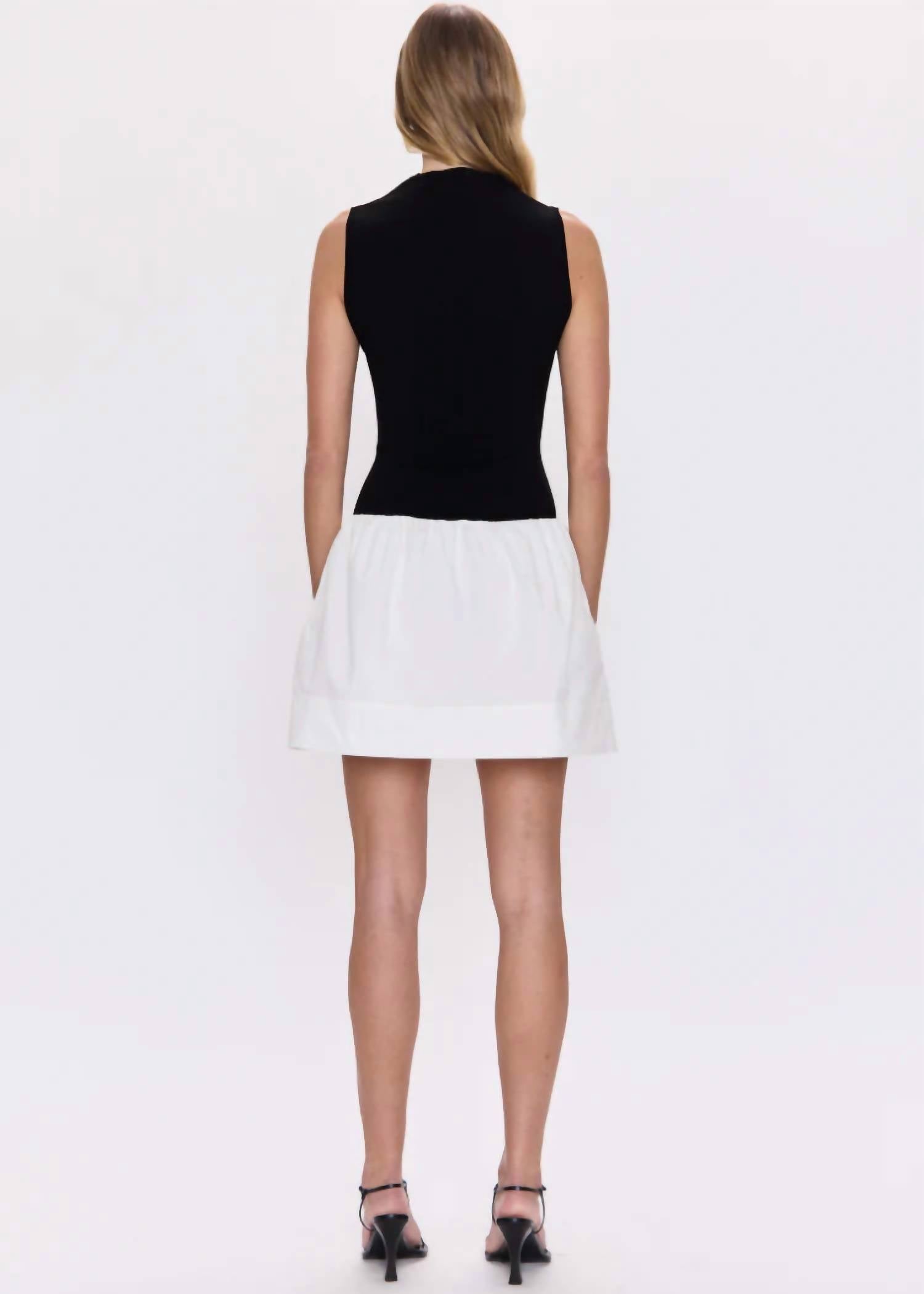 Discover the Adrienne Mixed Media Mini Dress by PISTOLA, a perfect fusion of style and comfort in Noir And Le Blanc. This sleeveless mini dress is crafted from a soft viscose blend and features side pockets for practicality. Closure: Pull on. Care: Hand wash. Ideal for any spring holiday party with its minimalist and elegant A-line silhouette.
