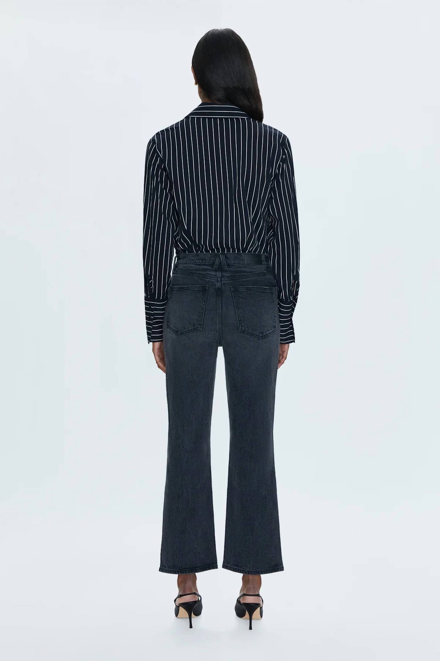 Tão fofos quanto confortáveis. Este jeans com estampa lisa é desenhado com um corte clássico flare e pernas largas, complementado por bolsos práticos. Feito para mulheres, este jeans oferece estilo e funcionalidade. Para cuidados, lave na máquina e seque na horizontal para manter seu visual atemporal. Feito com 77% algodão, 22% tencel e 1% elastano.