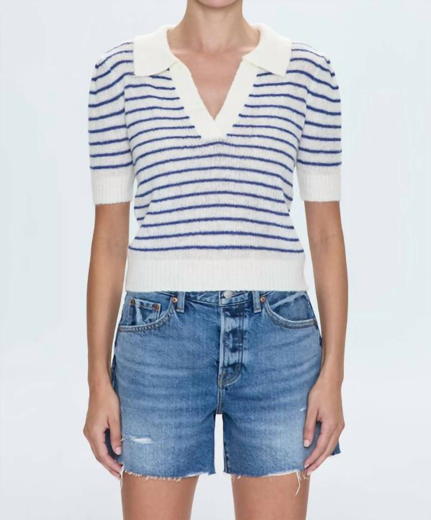 Não procure mais, você acabou de encontrar a camiseta perfeita! Apresentamos a Camisa Polo Billie com Mangas Plissadas da PISTOLA, uma adição chique a qualquer guarda-roupa de primavera, com mangas curtas e gola clássica. Feita com uma mistura de 45% acrílico, 30% nylon, 15% lã e 10% mohair, oferece um toque leve e respirável. Esta blusa levemente cropped, com acabamento em listras de conchas marítimas, é confeccionada na China e possui fecho pull-on. Para melhores resultados, lave esta peça estilosa a seco.