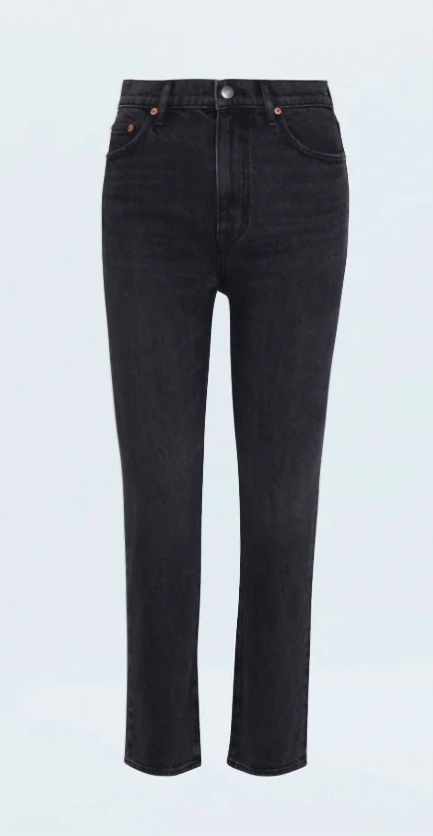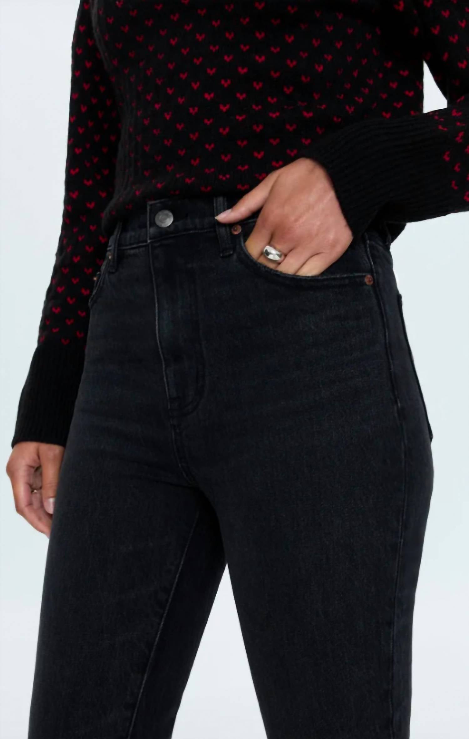 Cintura alta, pernas retas e justas, com corte curto no tornozelo. Confeccionada em jeans stretch confortável, a Lodge é feita em jeans preto lavado com costuras em tons e detalhes contrastantes em metal em tom cobre.