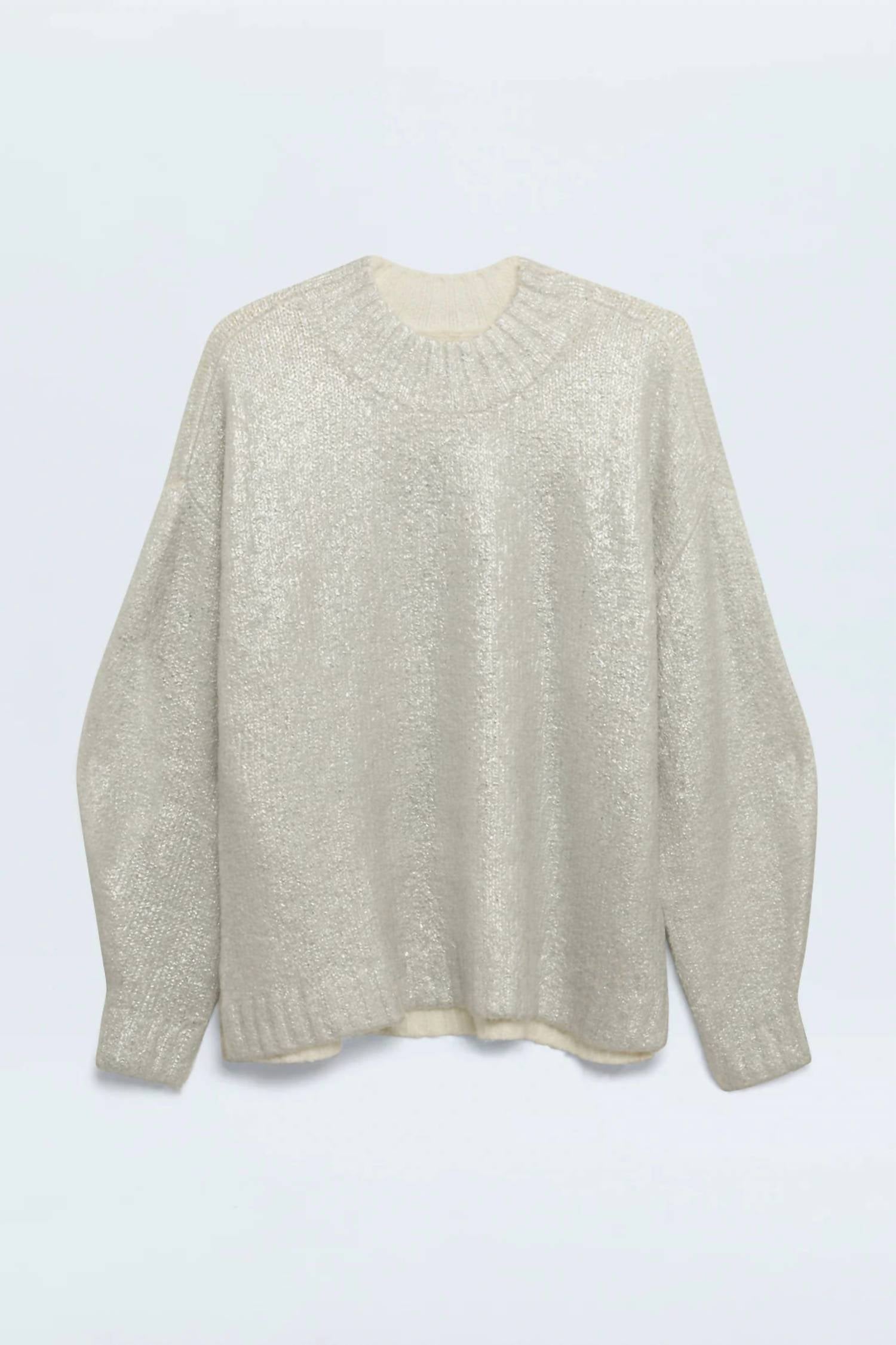 O suéter perfeito para usar em qualquer ocasião, habilmente confeccionado para proporcionar a combinação perfeita de aconchego e estilo. Seu design clássico e tecido macio o tornam um item essencial no seu guarda-roupa. Suéter de peso médio confeccionado em uma mistura de lã aconchegante e macia ao toque. Caimento amplo e elegante com punhos canelados, mangas amplas e gola falsa. Snow Disco tem um tom prateado iridescente com um brilho sazonal. Lavar a frio. 64% acrílico / 13% poliéster / 8% alpaca / 9% nylon / 4% lã / 2% elastano. Importado. Comprimento: 62 cm. A modelo tem 1,75 m e veste tamanho P.