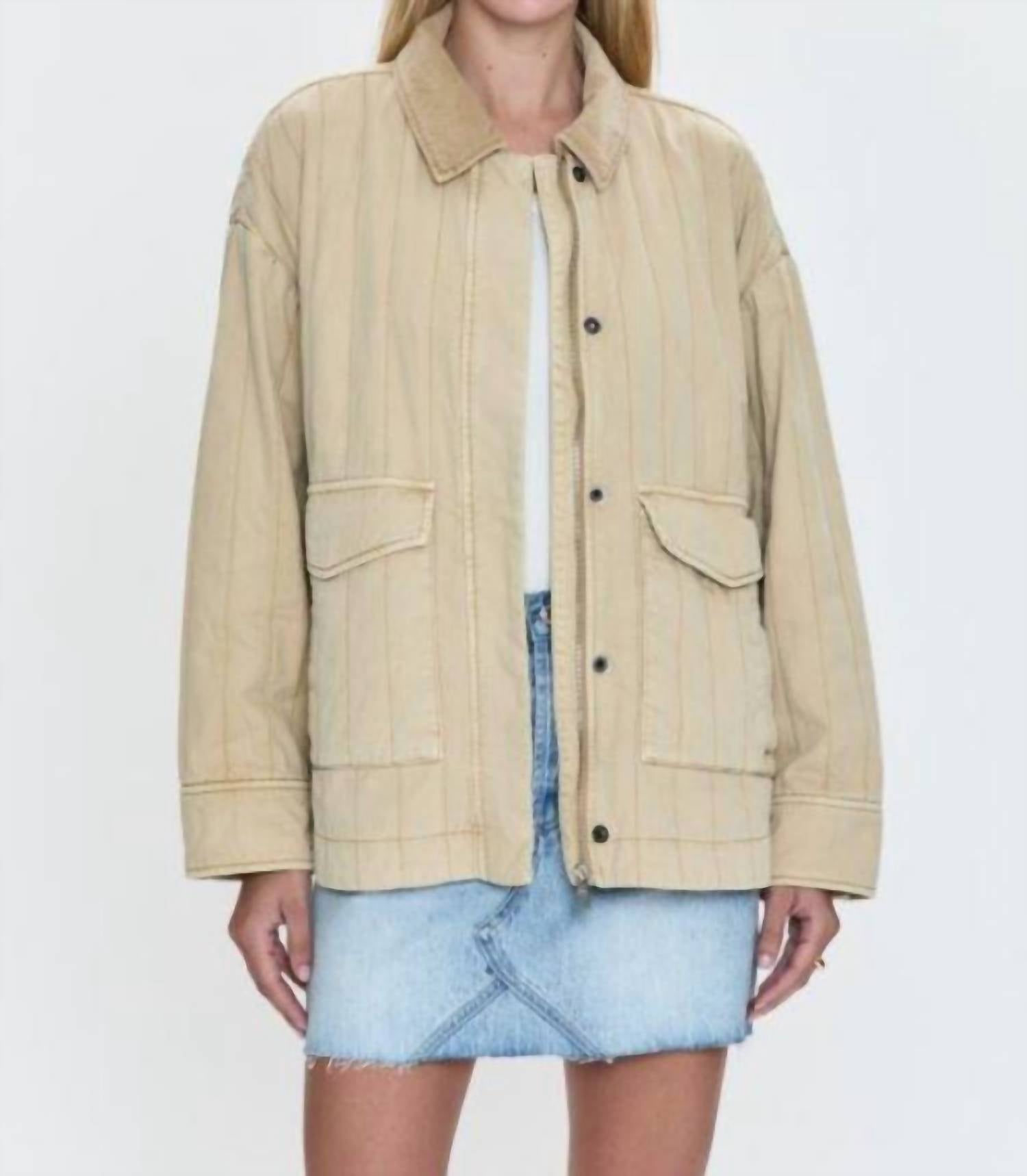 Esta jaqueta utilitária é a combinação perfeita de estilo e feminilidade. Eleve sua coleção de agasalhos com a Jaqueta Pistola Cecile na cor Canoe, uma jaqueta utilitária acolchoada perfeita para aventuras de inverno. Confeccionada em 100% algodão e com mangas compridas, esta peça de sarja de peso médio combina conforto e estilo. Fabricada na China, ela conta com um prático fecho frontal com zíper e botão, além de práticos bolsos frontais com aba. Os cuidados são simples, com instruções de lavagem à máquina em temperatura fria, garantindo que esta jaqueta seja uma peça indispensável para qualquer caminhada ou ocasião casual.