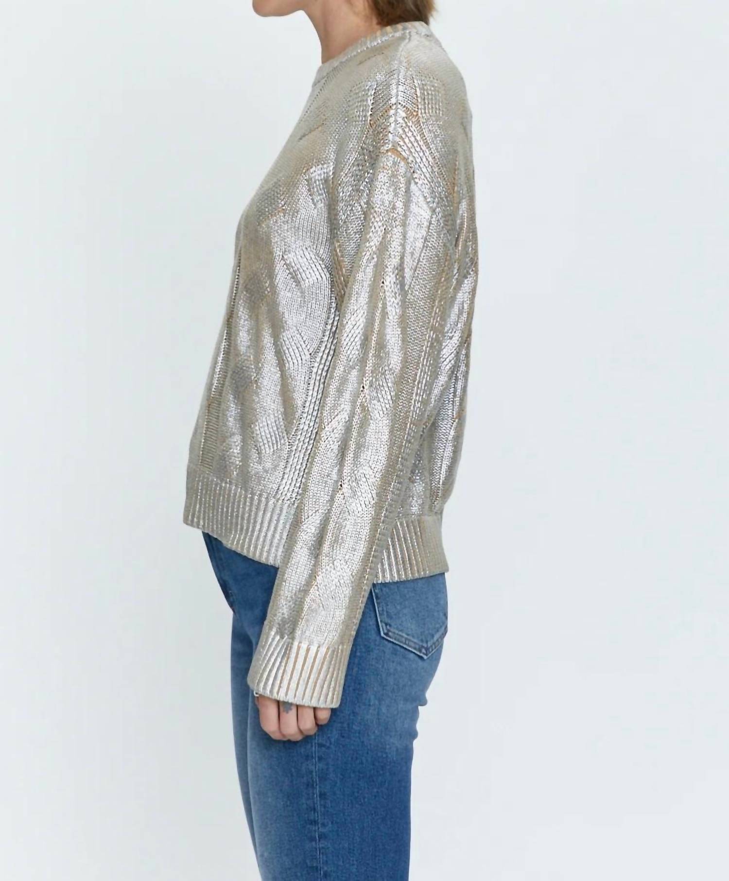 Mantenha-se aquecido e estiloso com esta peça essencial de tricô versátil e despojada. Use-o sozinho ou em camadas, é o suéter perfeito para a estação e você vai desejar tê-lo em todas as cores. Sua escolha ideal para as festividades de inverno e festas de Réveillon. Com mangas compridas e gola redonda, combina um tecido 100% algodão macio e respirável com um glamouroso revestimento prateado. Possui fecho pull-on e um caimento elegante para um visual minimalista e elegante. Perfeito para festas de fim de ano, captura um toque de brilho e sofisticação. Lavar à mão.