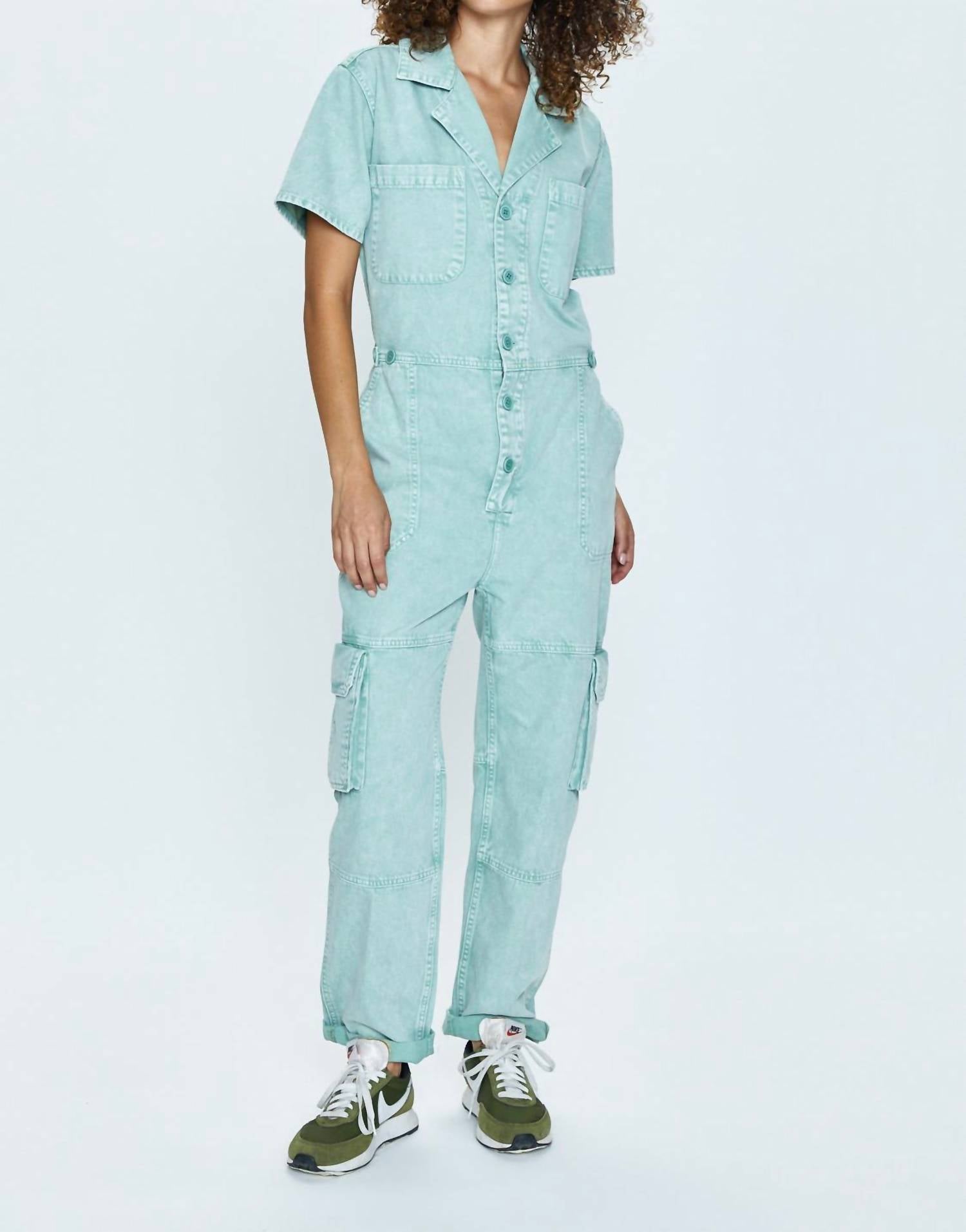 Vista e vá! Apresentamos o Macacão Cargo Grover da PISTOLA, uma peça completa, chique e funcional, em Aloe Snow, perfeita para viagens e passeios de primavera. Este macacão feminino apresenta um corpete abotoado com cintura ajustável para um ajuste personalizado, e seu caimento relaxado garante conforto durante todo o dia. Confeccionado em 100% algodão, possui estampa sólida e bolsos práticos, complementados por uma perna reta e cintura alta. Fechamento: Botão. Ideal para um estilo maximalista, esta peça é uma ótima opção para as festividades do Dia das Mães.
