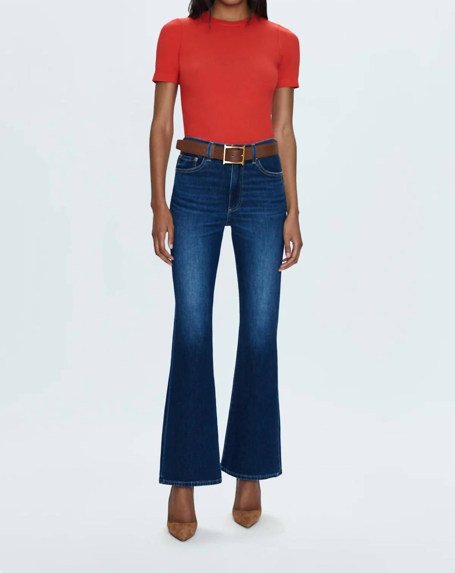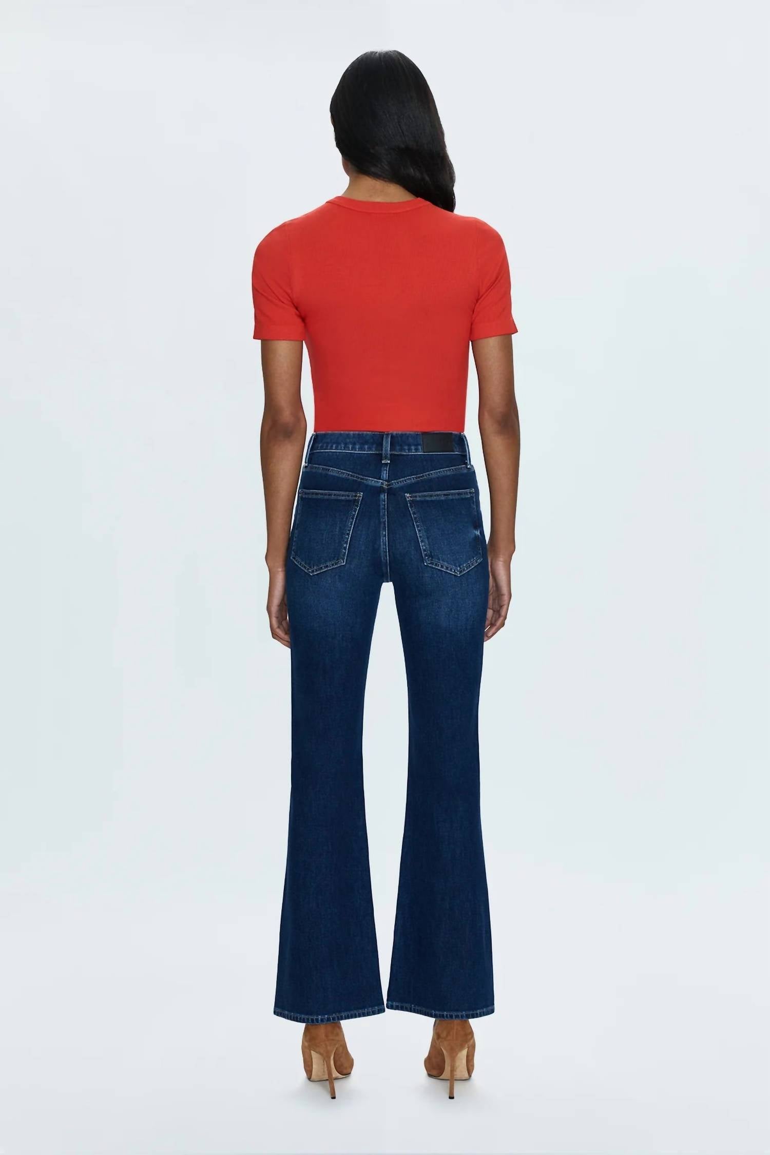 Uma calça jeans bootcut que não só veste bem, como também te deixa confortável o dia todo. Esta calça jeans de cintura alta apresenta um joelho afunilado que se transforma em uma perna bootcut alargada. Inclui passantes para cinto, fecho de zíper e bolsos funcionais. Confeccionada em 89% algodão, 9% poliéster e 2% Lycra para um alongamento confortável. O cós é de 27 cm e a costura interna tem 81 cm. A modelo tem 1,75 m e veste tamanho 26. Lavar à máquina com água fria.