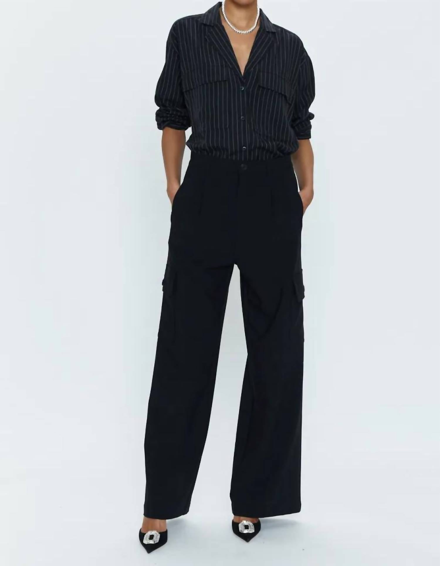 The Irene Effortless Button Down Shirt by PISTOLA offers a chic, minimalist look perfect for any holiday occasion. Crafted from Polyester, this stylish shirt features long sleeves, a classic collar, and a sophisticated black pinstripe pattern. With convenient button closure and added pockets, it fuses functionality with elegance, making it ideal for spring events like Thanksgiving holiday parties.