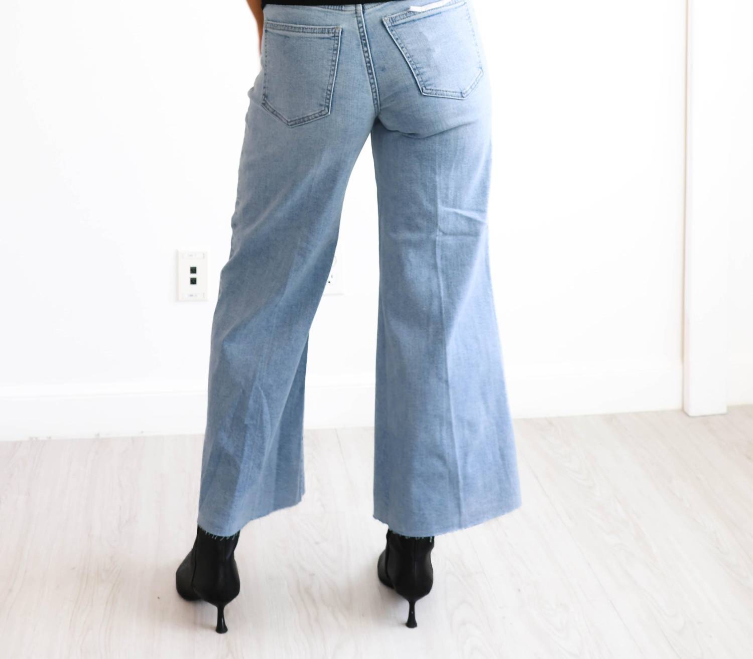 Incremente seu guarda-roupa com este modelo cropped moderno, criado para aliar estilo e praticidade. O caimento confortável permite um uso fácil durante todo o dia. O comprimento perfeito para combinar com seus mules favoritos. Apresentamos a Calça Jeans Cropped Izzy Wide Leg da PISTOLA, uma peça de destaque com lavagem leve e estampa lisa, perfeita para um visual streetwear. Esta calça jeans de cintura alta apresenta um caimento relaxado com pernas largas exageradas e uma bainha cropped crua e elegante. Confeccionada em uma confortável mistura de algodão composta por 75,5% algodão, 13% rayon, 10% poliéster e 1,5% poliuretano, garante durabilidade e facilidade de movimento. O fechamento é feito por botão e a lavagem é fácil, seguindo as instruções de lavagem à máquina. Com 27,7 cm de altura e 72 cm de comprimento, esta calça combina com diversos estilos, ideal para um look de férias estiloso.