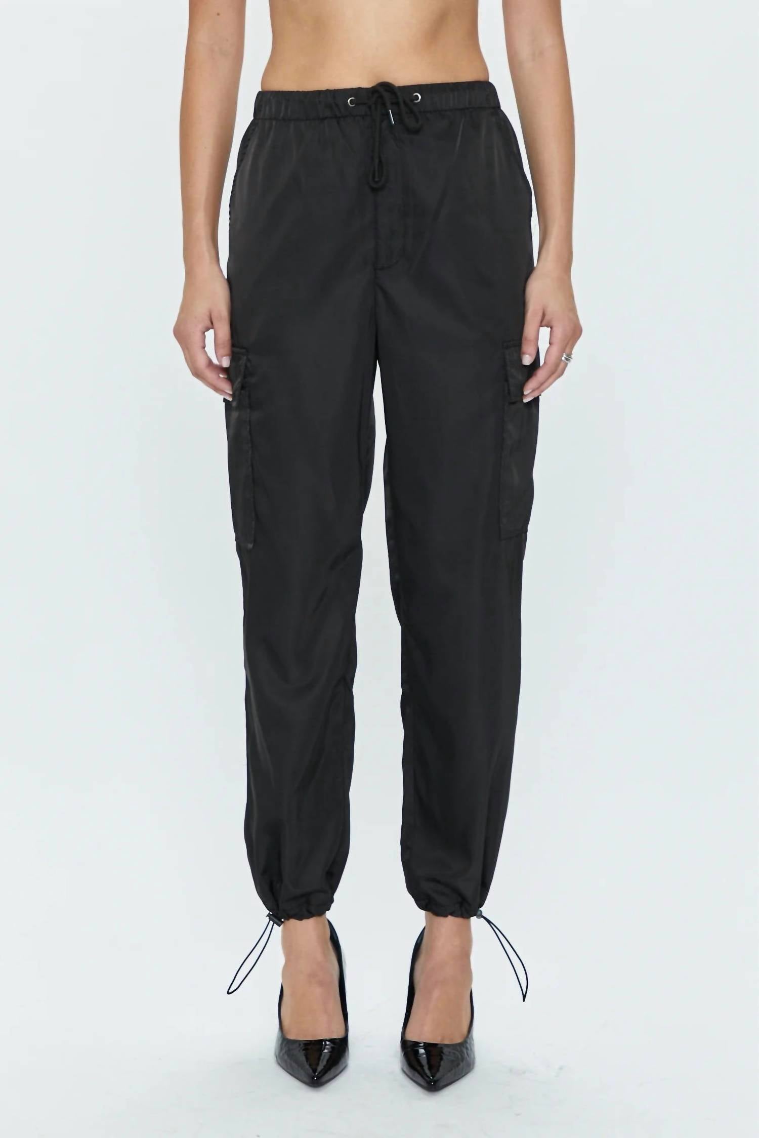 Eleve seu guarda-roupa com a Calça Cargo Leve Jade da PISTOLA, projetada para estilo e conforto. Confeccionada em 100% nylon, esta calça apresenta um leve brilho e bolsos utilitários que oferecem uma versão chique do estilo cargo. Com botões ajustáveis nos tornozelos, você pode alternar facilmente entre a calça jogger e a reta. Fechamento: Calçar. Com cintura alta e ajuste confortável, a costura interna mede 76 cm e o cós é de 30 cm, tornando-a perfeita para qualquer ocasião.