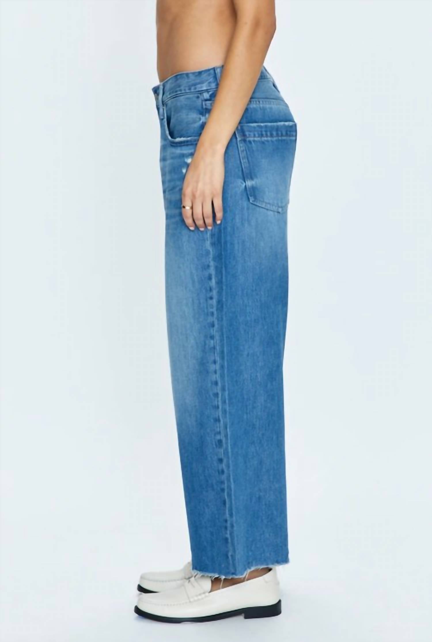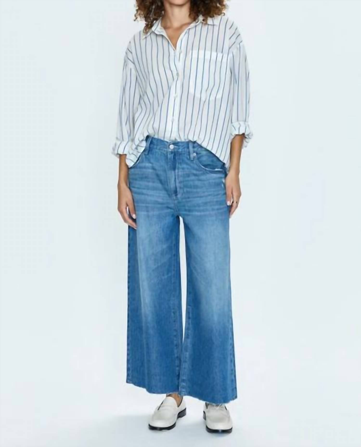 Combine esta calça jeans de perna larga com mules, slides ou suas sandálias de tiras favoritas. Eleve seu estilo com a calça jeans Jadyn Major da PISTOLA, feita sob medida para a it-girl moderna. Esta calça jeans azul de cintura alta apresenta um caimento relaxado e uma silhueta de perna larga, confeccionada em 100% algodão. Com um cós lisonjeiro de 28 cm, abertura de perna de 63 cm e costura interna de 81 cm, esta calça promete um visual chique sem esforço. Fechamento: zíper. Cuidados: Lavar à máquina e secar na secadora para fácil manutenção.
