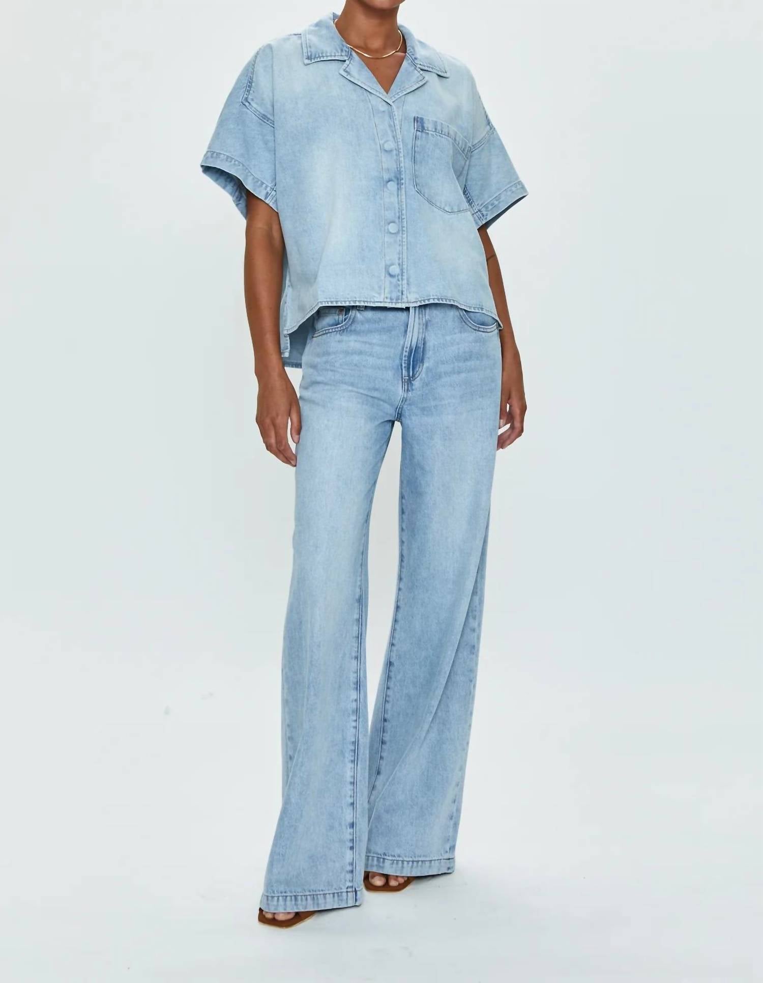 Combine esta calça jeans de perna larga com mules, slides ou suas sandálias de tiras favoritas. Peso leve, altura de 10" e abertura de perna de 11"