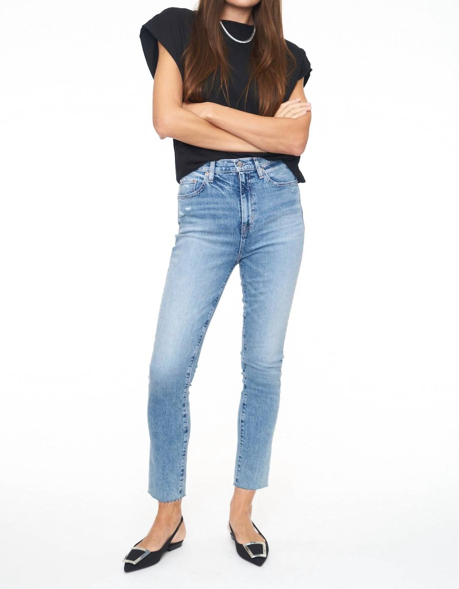 Com um caimento perfeito, nós amamos esses jeans de cintura alta e você também vai adorar. A Kate é uma calça jeans reta, slim, de cintura alta, na lavagem média Jasper. Cós: 29 cm; Abertura da perna: 30 cm; Costura interna: 71 cm. A modelo tem 1,78 m e veste tamanho 26. 99% algodão, 1% elastano. Lavagem a frio. Importado.