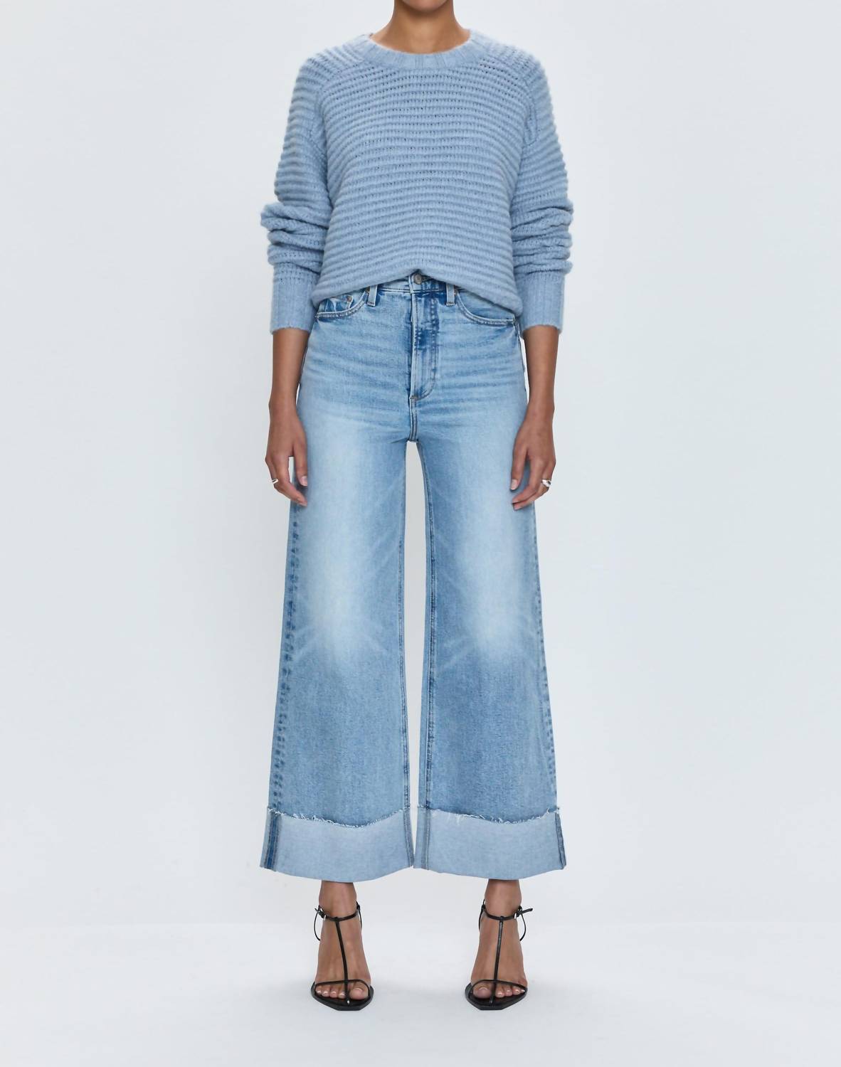 Combine esta calça jeans de perna larga com mules, slides ou suas sandálias de tiras favoritas. Apresentamos a Calça Jeans Lana Crop Wide Leg da PISTOLA, essencial para qualquer entusiasta de jeans que adote a tendência da primavera dos anos 90. Com caimento relaxado e pernas ultra largas, esta calça jeans é confeccionada em uma mistura de 99% algodão e 1% elastano, na elegante lavagem leve Snowcat. Com cintura alta de 30 cm, abertura de perna de 60 cm e costura interna de 70 cm, oferece estrutura e flexibilidade, reforçadas pelo fecho de botões e bainha sem acabamento. Ideal para ocasiões casuais e jantares, esta calça jeans importada é fácil de cuidar, com instruções de lavagem à máquina e secagem em tambor.