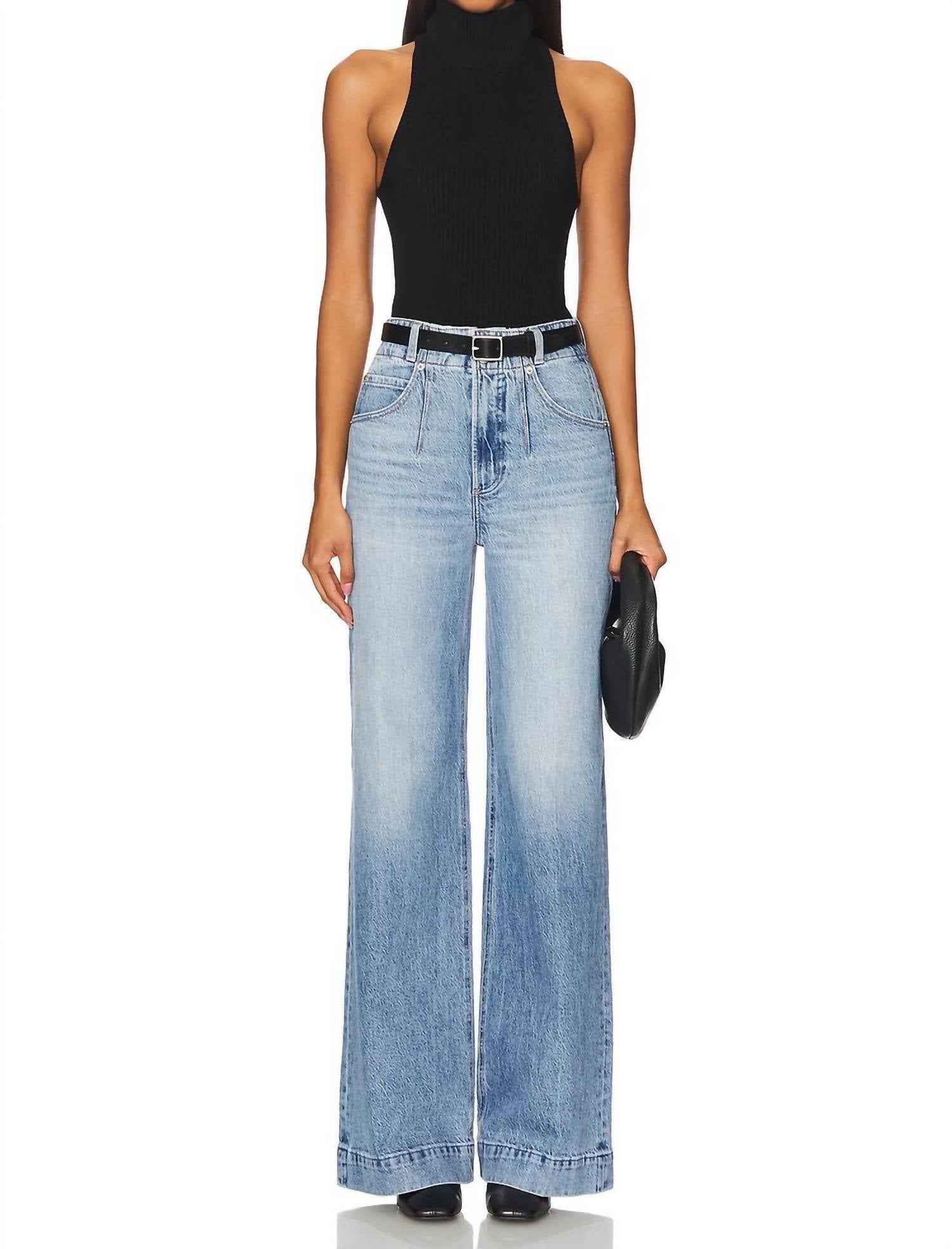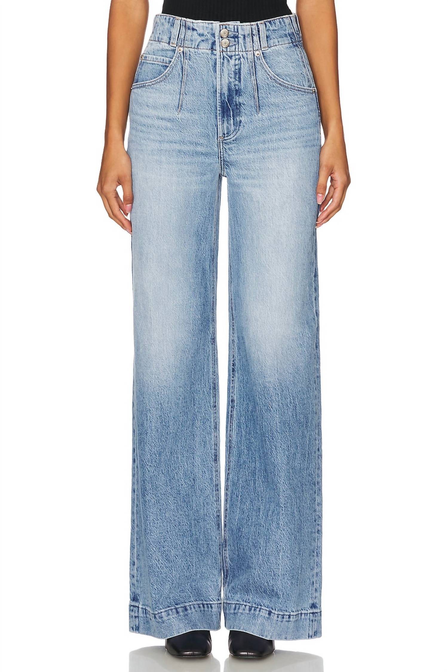 Tão fofos quanto confortáveis. Descubra a calça jeans Lana Double Button High Rise Ultra Wide Leg da PISTOLA, uma escolha chique para quem busca uma peça marcante nesta primavera. Confeccionada em material misto de algodão, esta calça jeans com lavagem clara apresenta cintura alta e modelagem ultralarga, perfeita para incrementar seu look de aniversário. Ela vem com um prático fecho de botão e bolsos para maior funcionalidade. Desfrute da simplicidade de uma calça jeans com estampa lisa que combina estilo e conforto sem esforço.