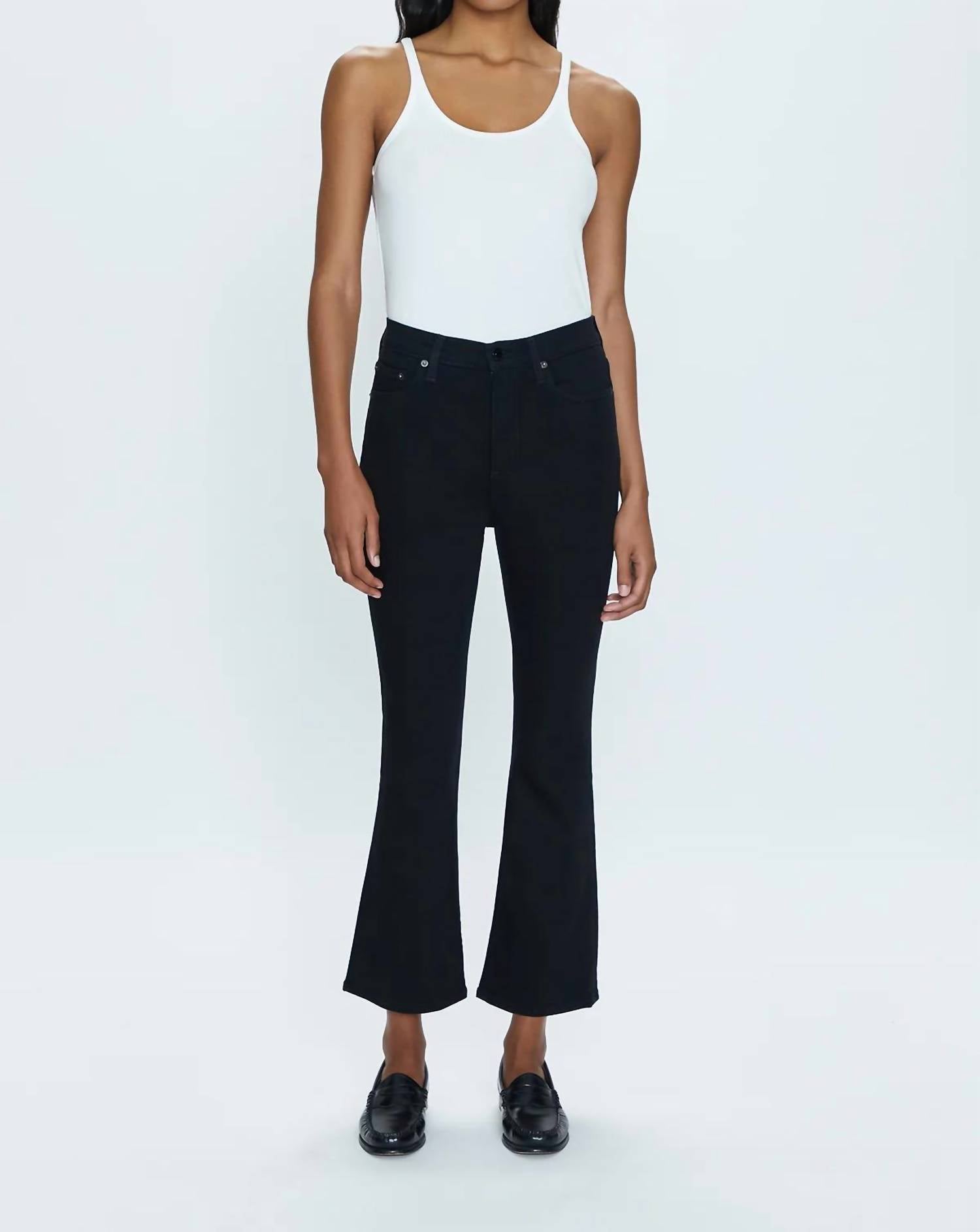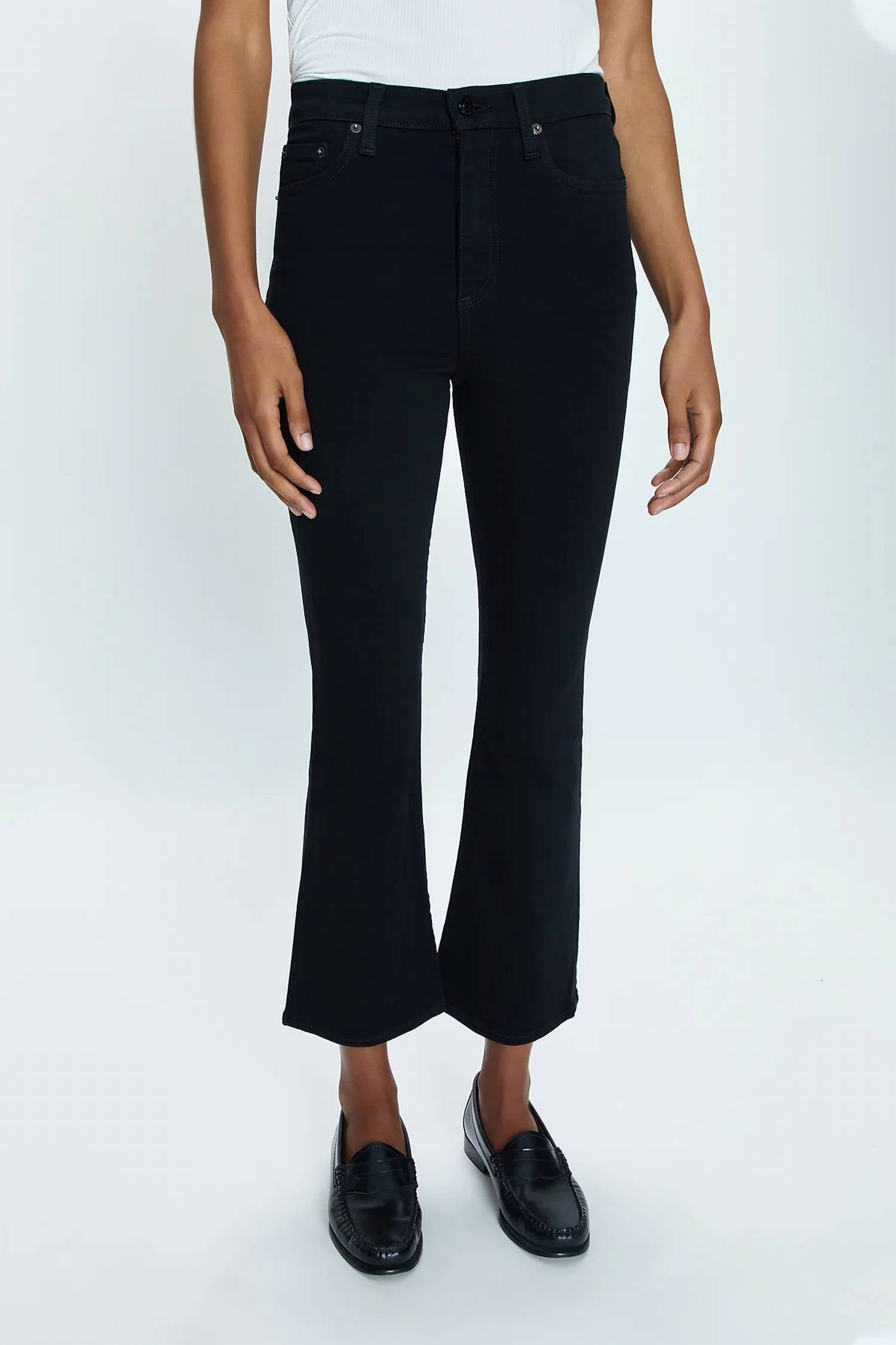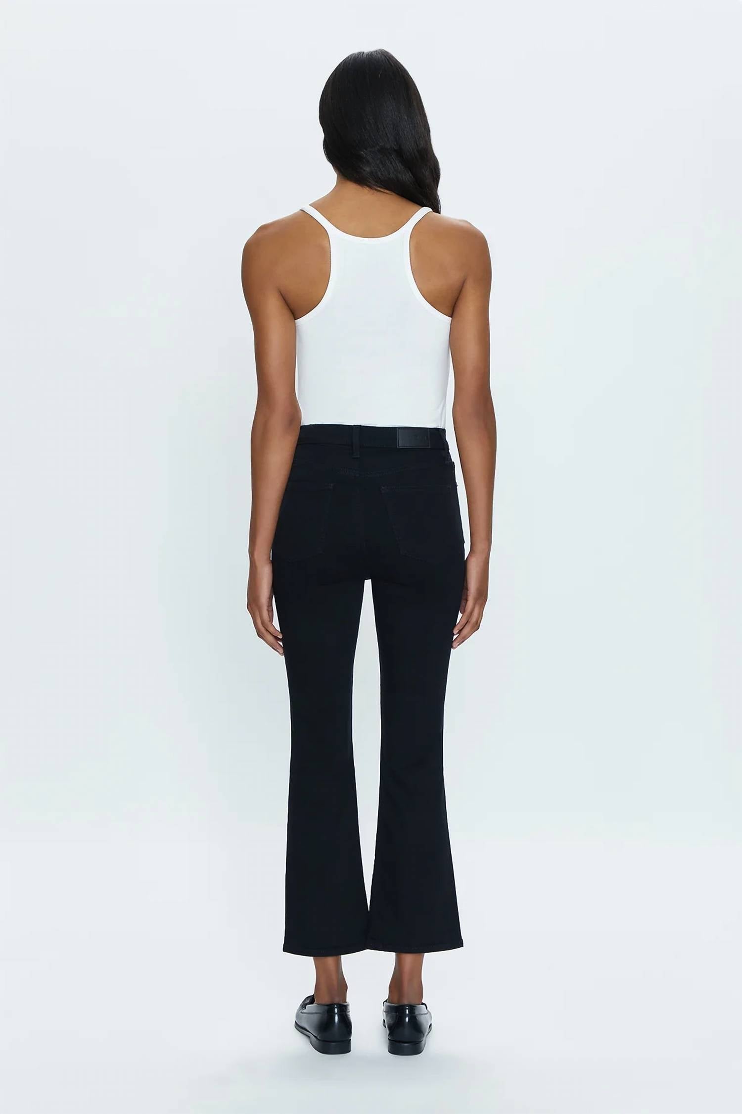 Se você está procurando um jeans boot-cut, este é o jeans para você. Com cintura alta e barra curta no tornozelo, acabamento liso noir. A calça jeans boot cut é confeccionada em 98% algodão e 2% elastano. Garante conforto com um ajuste confortável e material com elasticidade confortável. Inclui bolsos práticos e um fecho de botão clássico. Oferecendo funcionalidade e elegância. Com 28 cm de altura e 68 cm de costura interna. Lavável à máquina para facilitar a manutenção.