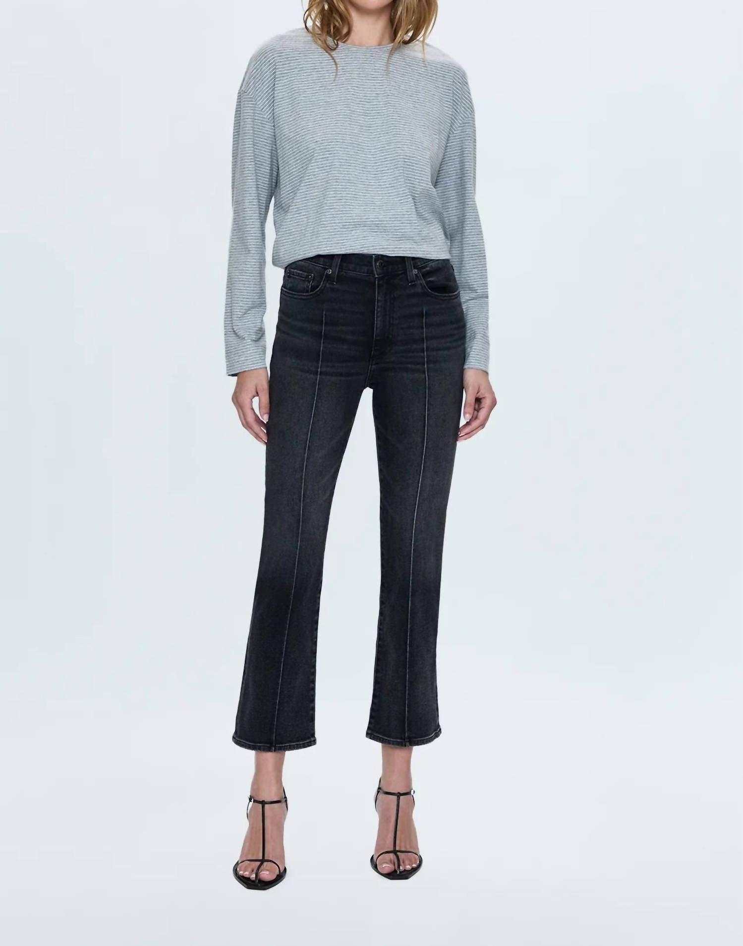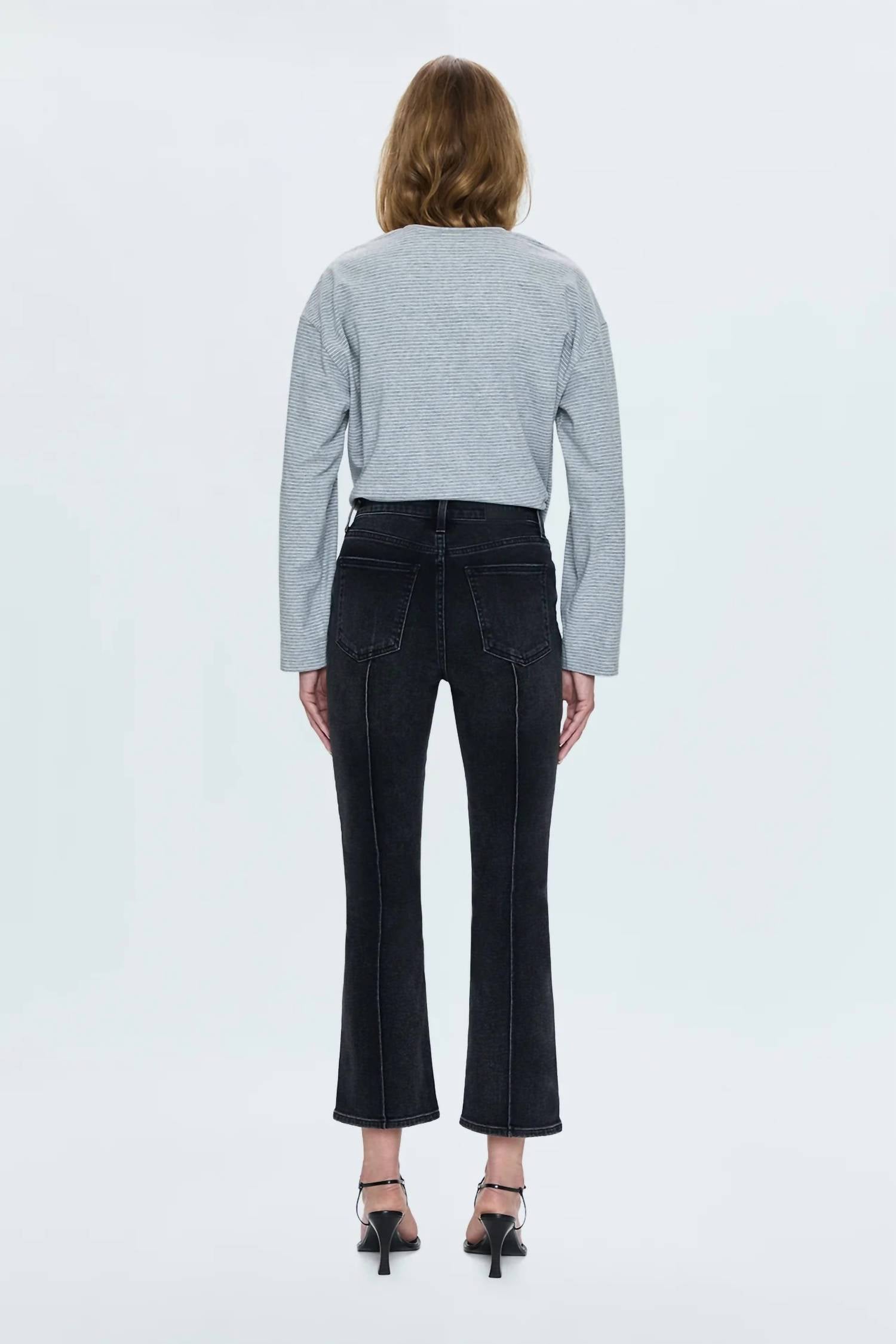 Se você está procurando um jeans boot-cut, este é o jeans para você. Conheça a Calça Jeans Cropped Bootcut de Cintura Alta Lennon da PISTOLA, uma adição marcante ao seu guarda-roupa de primavera em Preto Lavado. Esta calça jeans apresenta uma cintura alta elegante e uma bainha curta no tornozelo, realçada por costuras franzidas na frente e atrás das pernas para uma silhueta elegante. Confeccionada em uma mistura confortável de jeans com elastano, a composição inclui 94% algodão, 5% poliéster e 1% poliéster, oferecendo o equilíbrio perfeito entre durabilidade e flexibilidade. Ela possui fecho de botão e pode ser lavada na máquina, tornando-a uma opção prática e estilosa para férias e muito mais. Com 26 cm de altura e 68 cm de costura interna, ela proporciona um caimento perfeito com uma abertura de perna de 40 cm. Importada para garantir a qualidade, esta calça jeans bootcut é tão confortável quanto bonita.