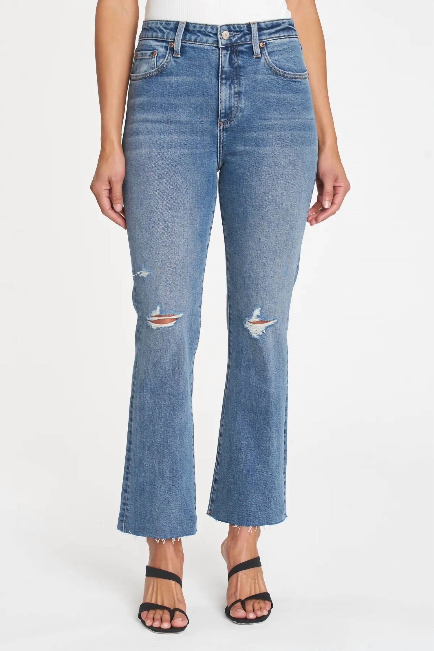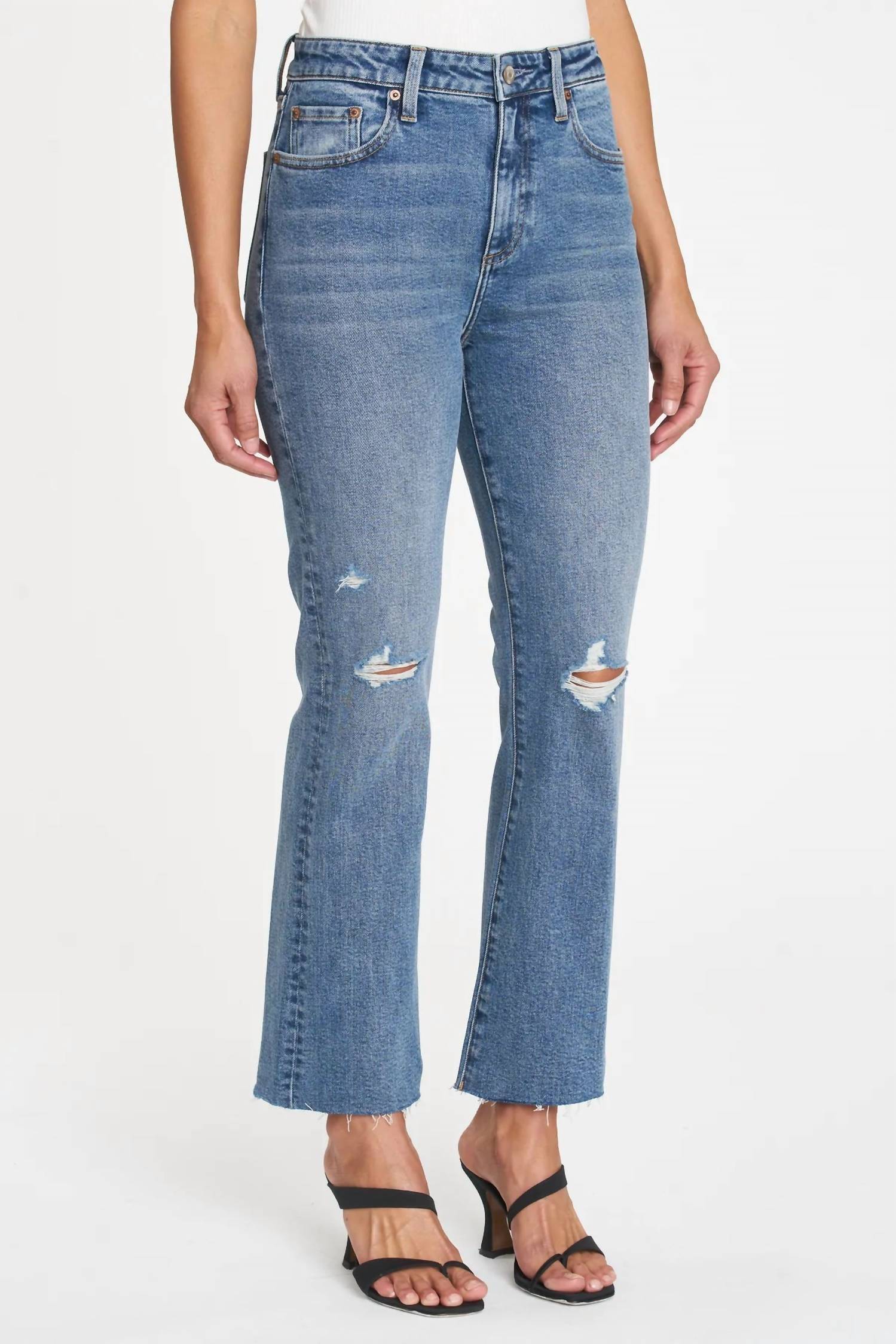 A cintura alta veio para ficar e nós amamos especialmente esse estilo. O Lennon é o corte bootcut de cintura alta característico. Ele abraça você da cintura ao joelho e se alarga no tornozelo. Este estilo clássico de lavagem média apresenta um desfiado sutil nas bainhas. Gancho: 25 cm | Costura interna: 68 cm | Abertura da perna: 40 cm. A modelo tem 1,78 m e veste tamanho 26. 72% algodão / 27% rayon / 1% elastano. Lavar com água fria. Importado.