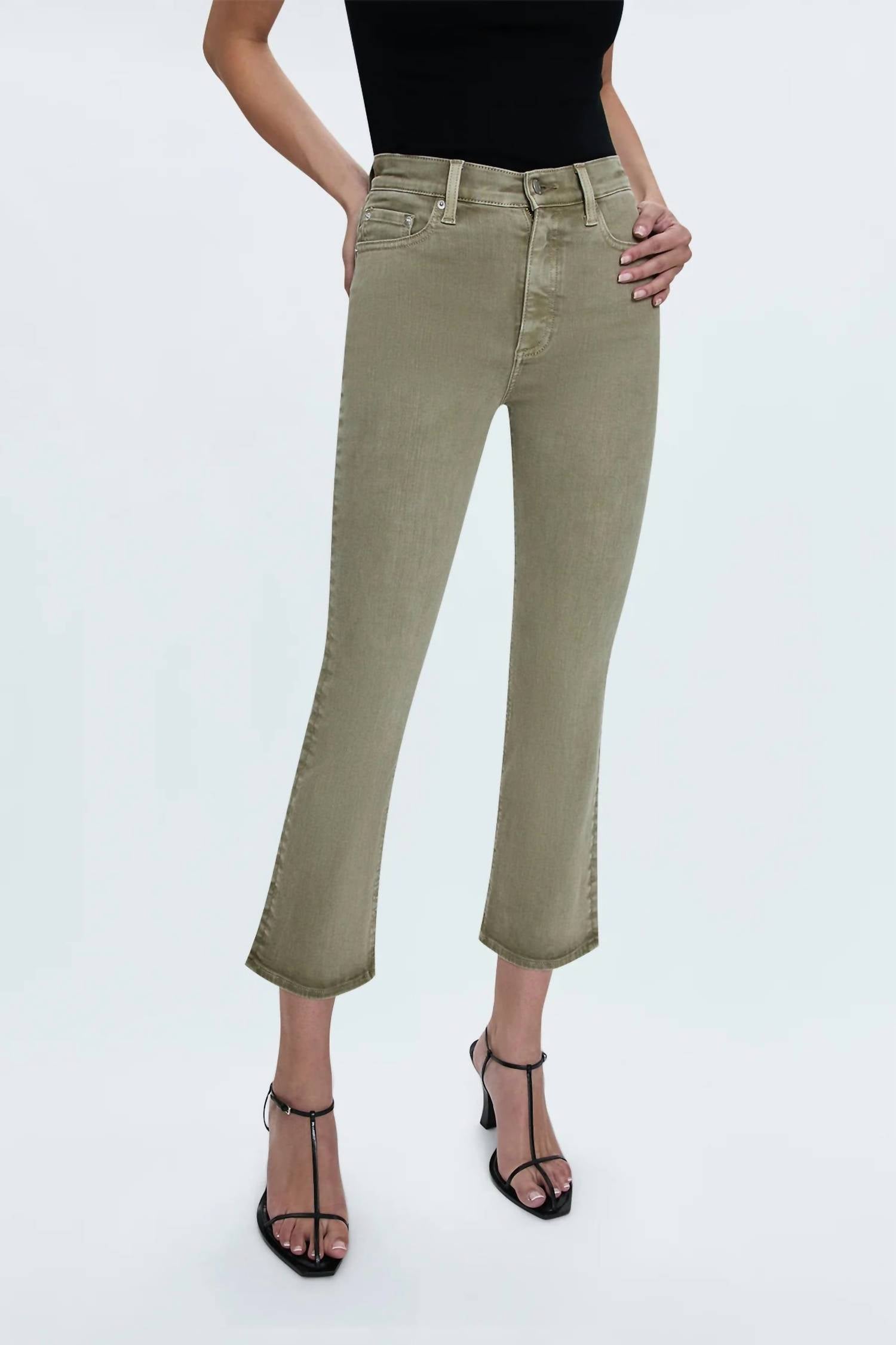 A cintura alta veio para ficar e nós amamos especialmente esse estilo. Eleve seu guarda-roupa com a Calça Lennon da PISTOLA, habilmente confeccionada no atraente tom Green Willow. Esta calça feminina apresenta cintura alta, cós de 28 cm e 68 cm de comprimento, com corte bootcut e perna alargada. Confeccionada em mistura de algodão, o tecido inclui 67% algodão, 9% rayon, 22% poliéster reciclado e 2% elastano para um ajuste confortável. Importada com acabamento clean, esta calça apresenta fecho de botão e costuras no mesmo tom. Cuidados: Lavar à máquina.