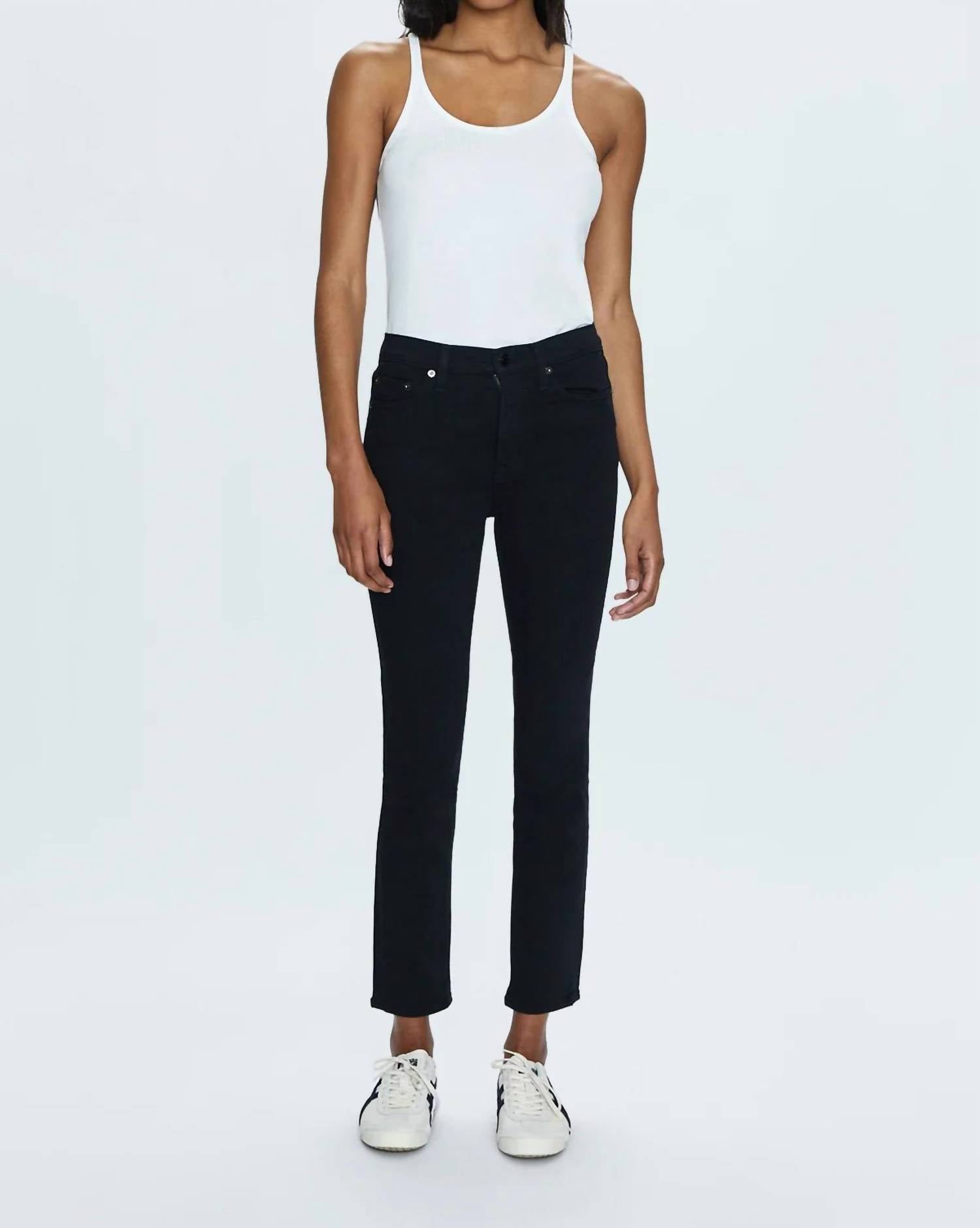 Eleve sua coleção de jeans com a Calça Jeans Madi High Rise Modern Slim da Pistola, confeccionada em uma confortável mistura de algodão na elegante cor Noir. Esta calça jeans apresenta cintura alta com caimento relaxado na perna skinny, além de uma abertura mais ampla na perna slim fit, feita em jeans superelástico para se ajustar ao corpo. Composição: 95% algodão, 4% elastano, 1% elastano. Fechamento: Botão. Cuidados: Lavar à máquina. A costura interna mede 73 cm com um aumento de 26 cm para uma silhueta elegante.