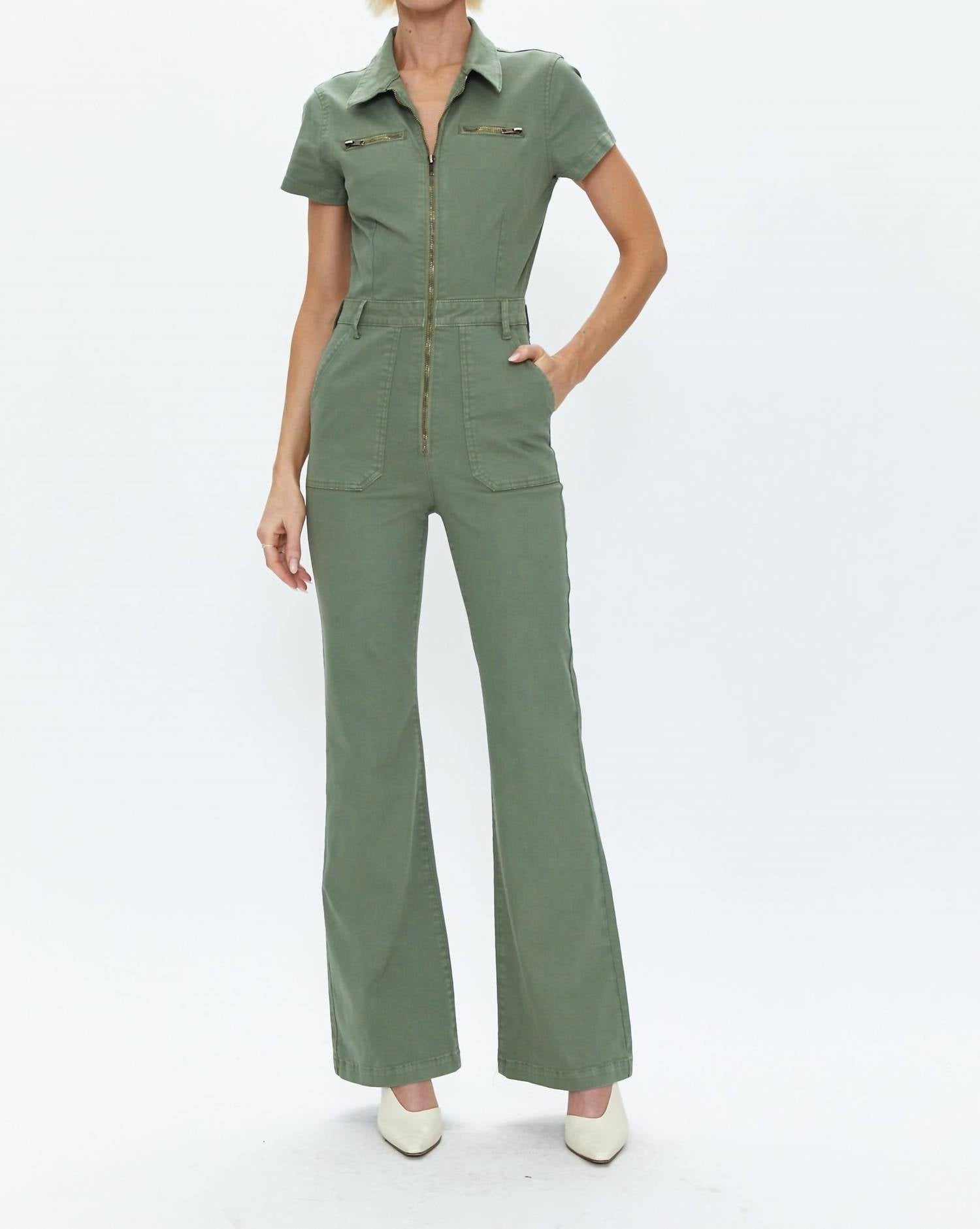 A escolha perfeita de roupa quando você precisa de algo rápido para vestir e ainda quer ter um visual descolado sem esforço. Peça essencial chique em Verde Colonel, com design perfeito. Com caimento relaxado e pernas largas. Possui um fecho de zíper elegante e bolsos práticos. Confeccionada em 98% algodão e 2% elastano. Promete elasticidade e conforto sem abrir mão da elegância. Lavar à máquina com água fria e secar no varal. Tamanho real.