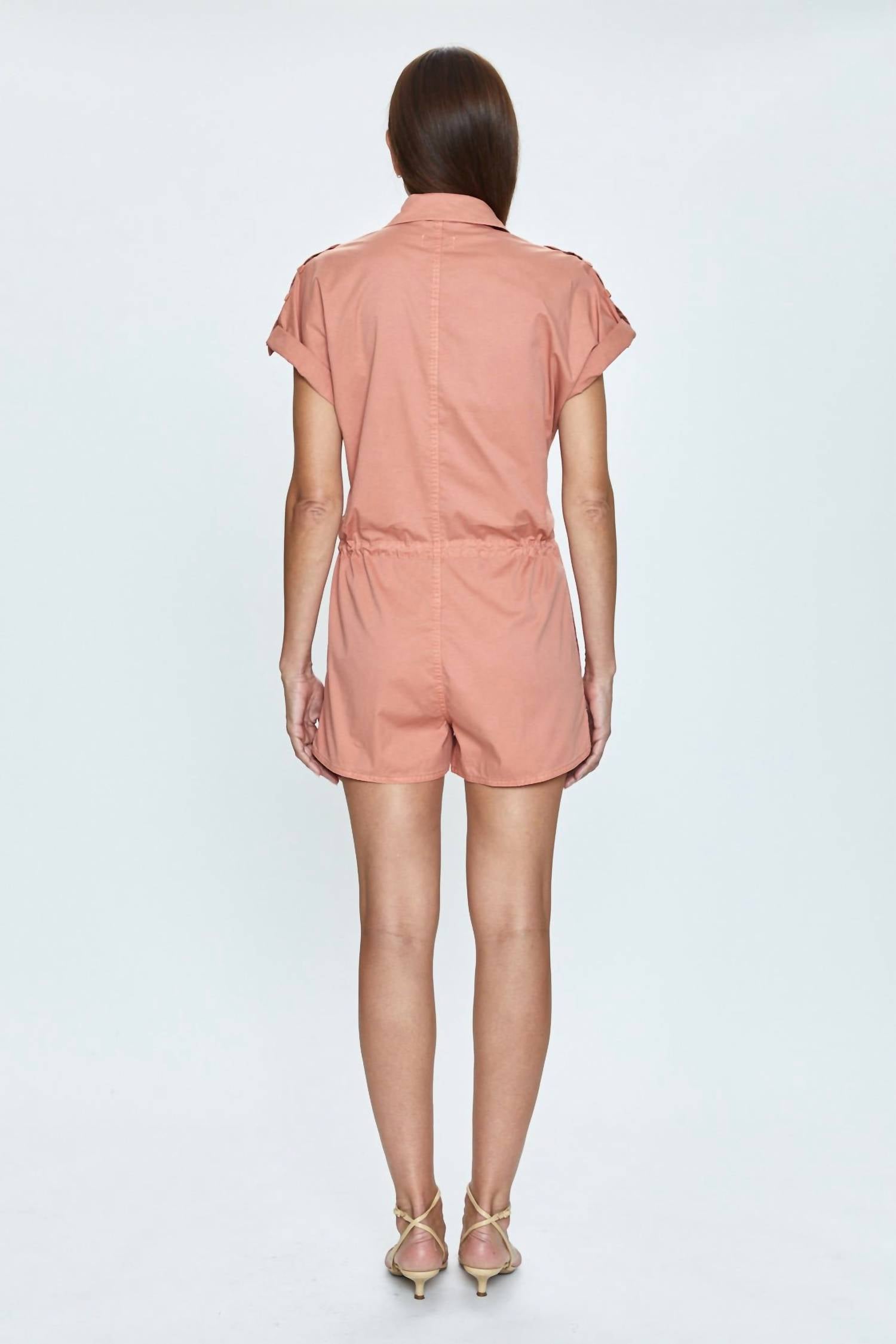 A escolha perfeita de roupa quando você precisa de algo rápido para vestir e ainda quer ter um visual descolado sem esforço. Liberte o estilo sem esforço com o Macacão Meg com Zíper Frontal da PISTOLA, uma peça vibrante em tumeric da categoria Macacões e Macaquinhos. Este macacão de manga curta é confeccionado em uma confortável mistura de algodão e possui um prático fecho de zíper. Projetado com detalhes cuidadosos, como dragonas ajustáveis e cordão na cintura para ajuste personalizado, inclui bolsos para maior praticidade. Ideal para férias, este macacão requer lavagem à mão para manter sua qualidade, com costura interna de 6 cm.