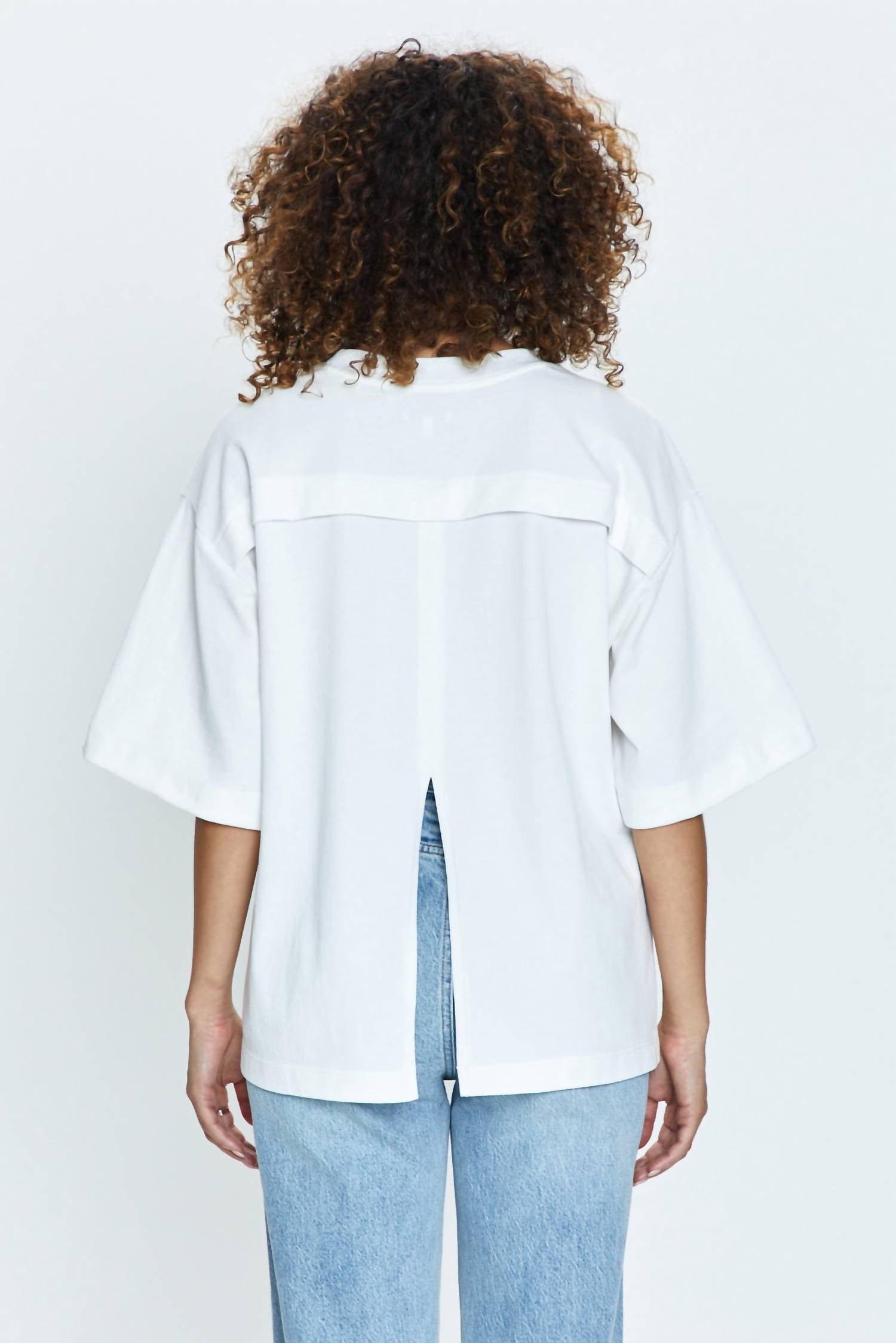 Descubra a Milan Tee by PISTOLA, uma versão chique da clássica camiseta branca na cor Le Blanc. Esta silhueta descontraída apresenta mangas curtas e um exclusivo decote com vários painéis e uma ousada abertura com meia fenda. Confeccionada em 100% algodão, esta camiseta mede 65 cm de comprimento. Importada e projetada para ser fácil de usar, com fecho pull-on, ela precisa ser lavada a seco para manter sua aparência impecável.